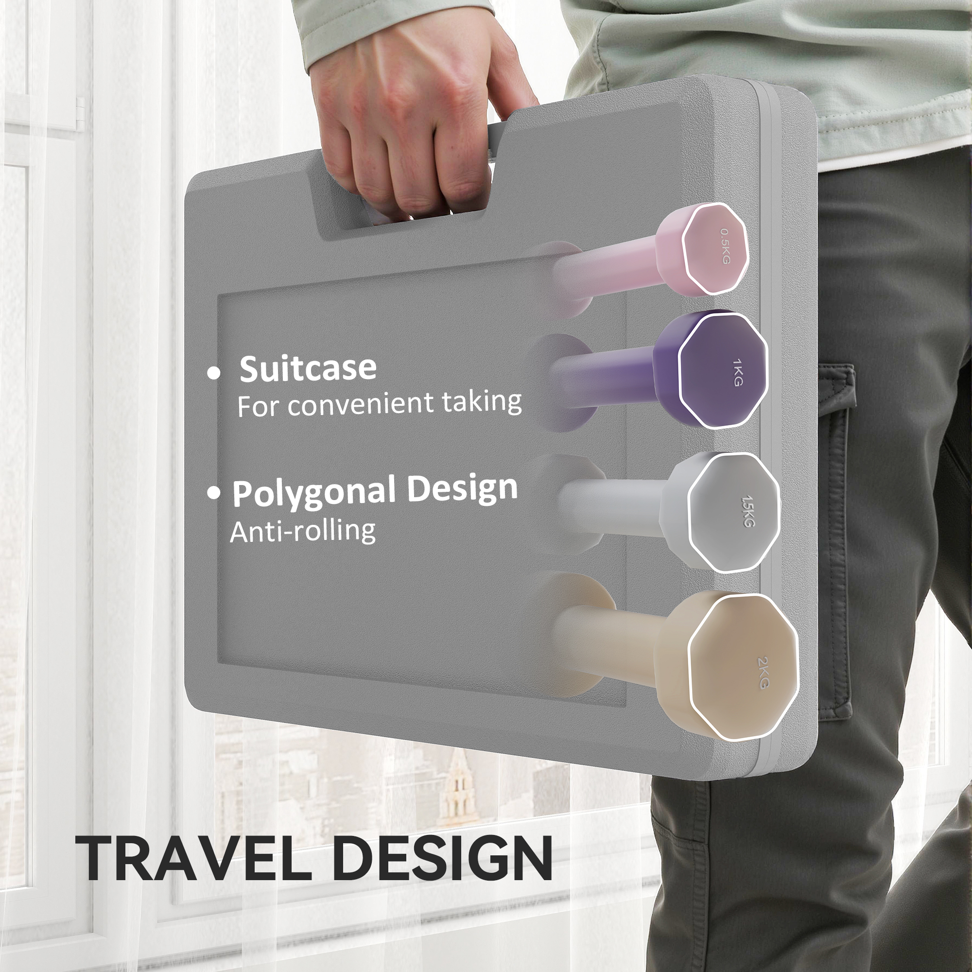 Build up your workouts or simply vary them up whenever - go for this weights set from HOMCOM. Comes with pairs of the following weights: 0. 5kg, 1kg, 1. 5kg and 2kg. They're suitable for lifting, cardio, yoga and squats. The bright colours are fun, with easy-read weight numbers on both ends to finish. If you're looking to liven up your exercise times, then these dumbbells will do exactly that.