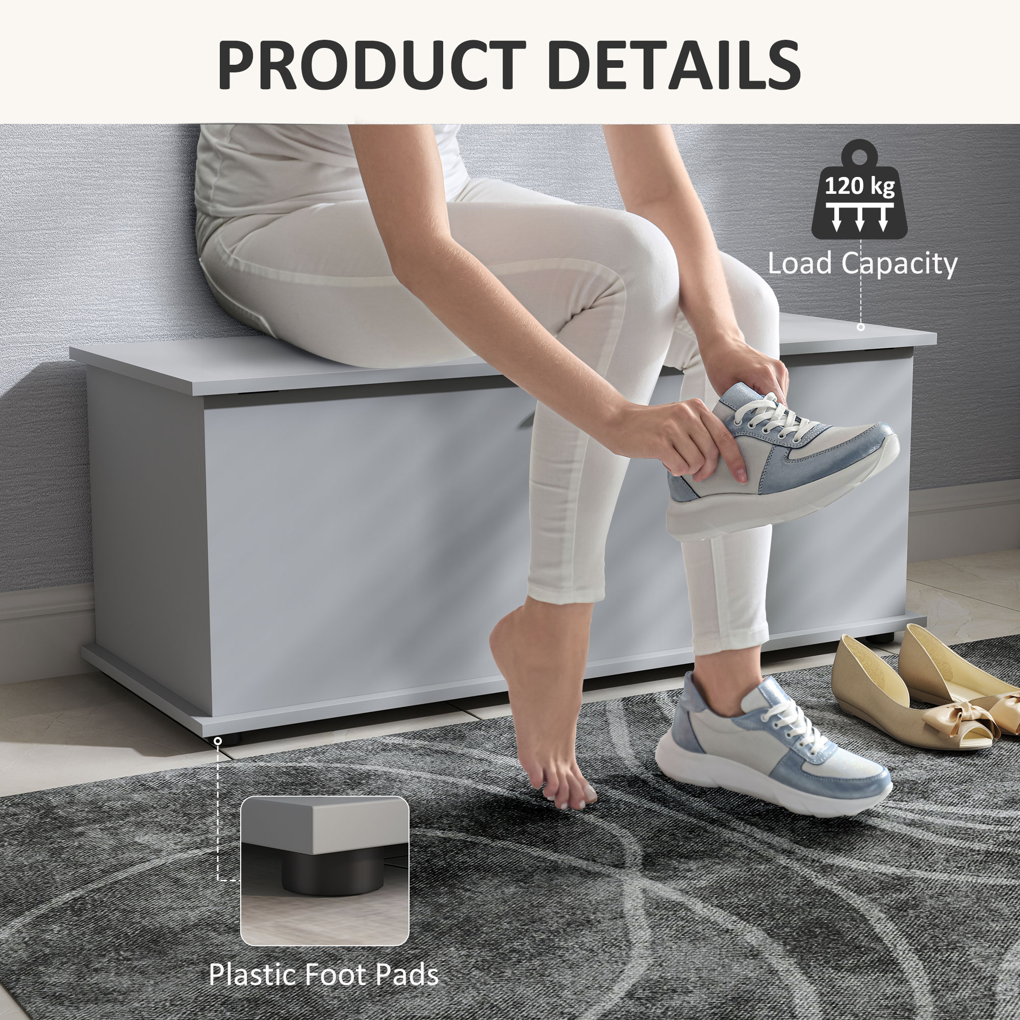 HOMCOM offers the optimal storage solution to all your organising needs with this simple modern designed storage chest. The robust wooden construction makes the lid and the internal space hold weight up to 120kg and 60kg. Constructed to offer a great decorative and practical addition to any room decor. This storage box can be used as a footstool or bed end bench.