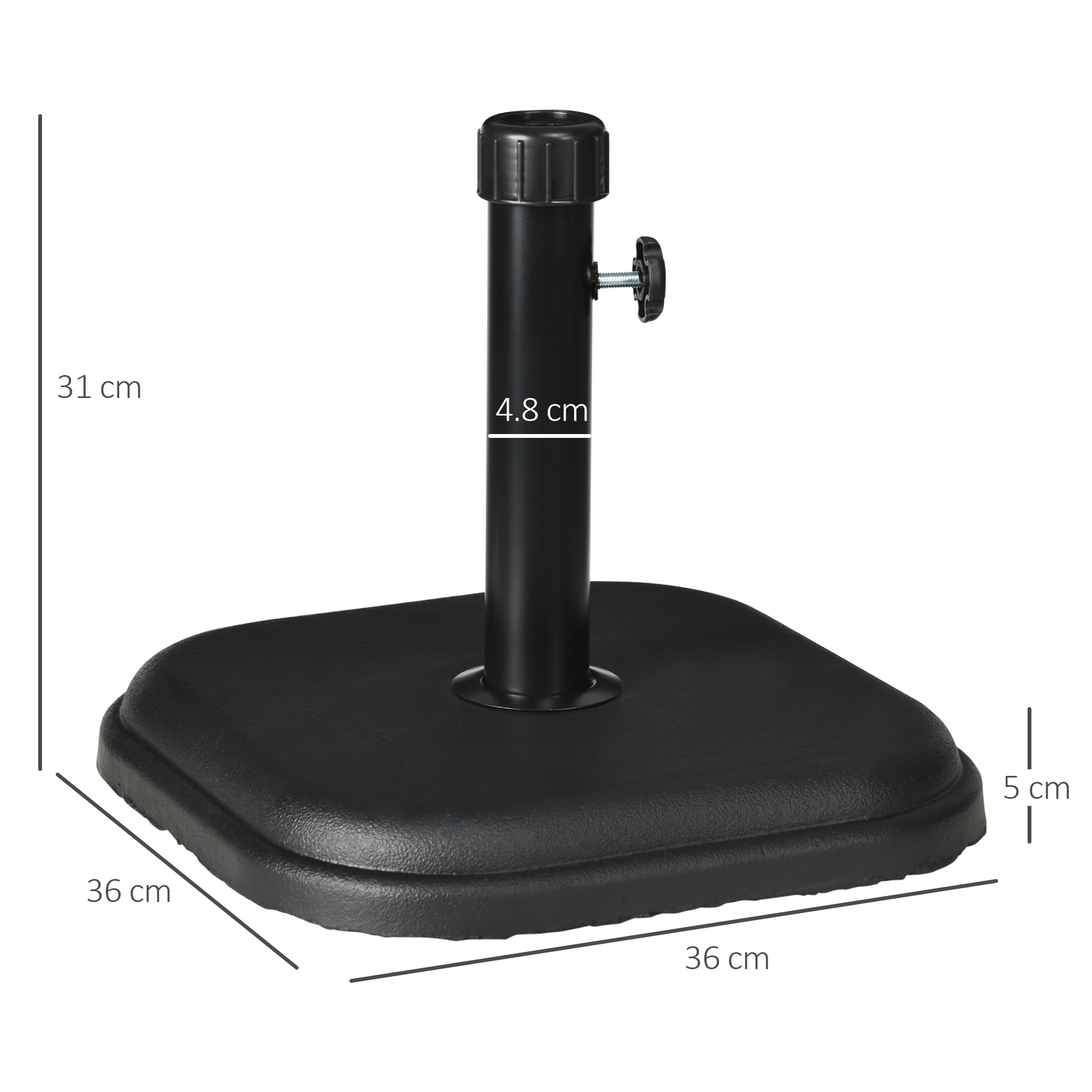 For parasols you use in the middle of tables, look to this Outsunny outdoor umbrella stand base to hold it in place. The tough plastic shell makes it suitable for outdoor use, with a concrete filling so it stands the parasol sterady in place. Features a tightening knob - once the umbrella is in place, all you have to do is tightening for full security.