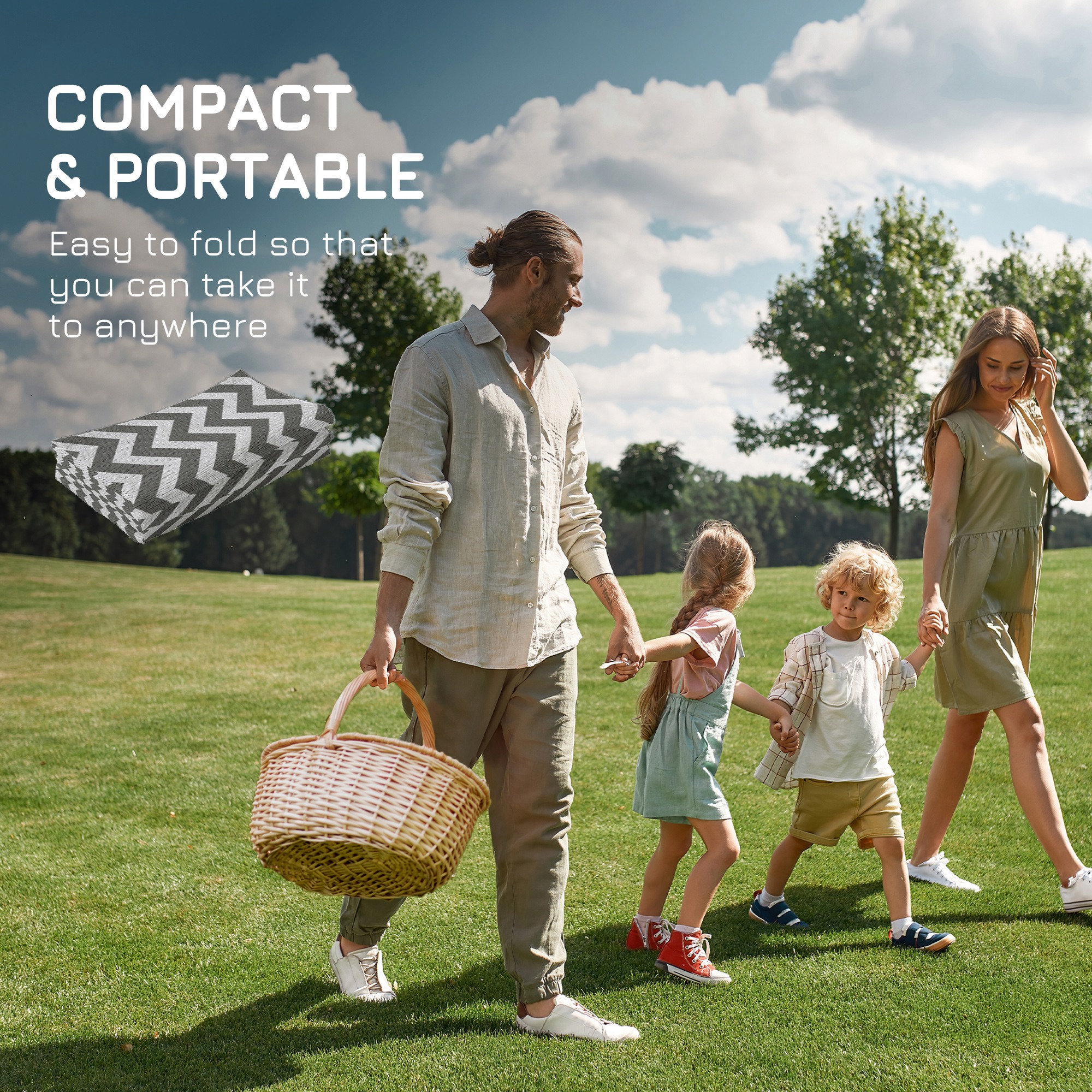 Set up your activity base for camping or other outdoor activities. The outdoor rug waterproof is specially designed for outdoor use like camping, picnic, road tour, etc. It's widely suitable for camper vans, RVs, the beach, gazebos, patios, playrooms or anywhere you need it. The tough material resists water and UV, which is anti-fading and protects from ground moisture. Furthermore, flip it over to update the look and style!