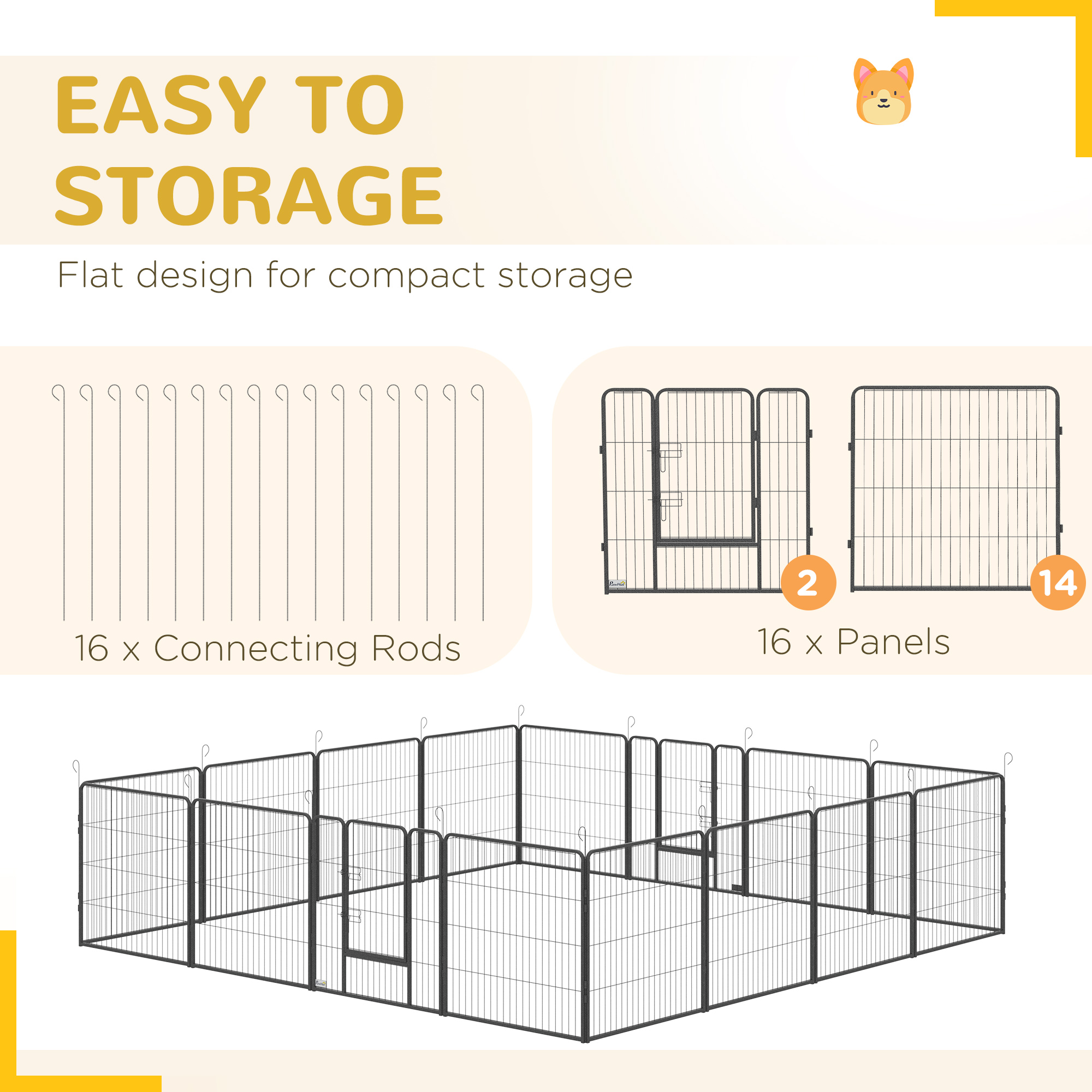With this PawHut dog play pen, pets have a safe space to be themselves, whilst giving you peace of mind. With 16 panels, it's flexible and spacious, providing lots of room to roam, play and relax - pets won't feel boxed in. Features ground stakes that go into the ground for stability, you'll set this playpen into different shapes to fit your layout, whether it's inside or outside. For pets, it's freedom and security and for you, it's knowing they're safe and sound, with lots of space to enjoy.
