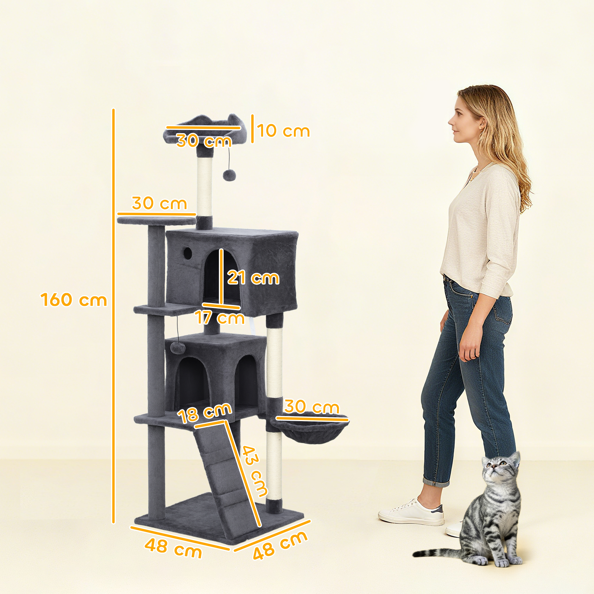 - Sisal-wrapped posts for digging and scratching, saving your furniture from damage