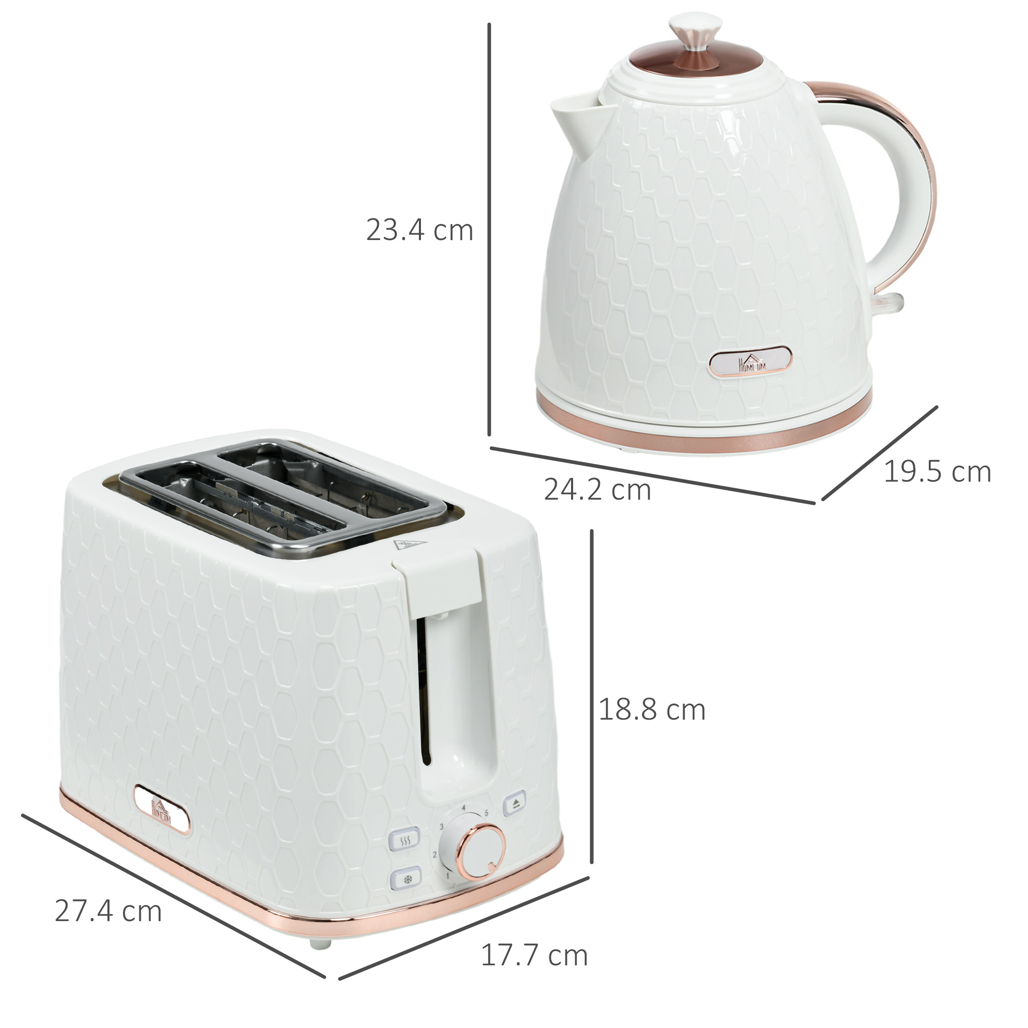 Features: - 1. 7L fast boil kettle and matching two-slice toaster. Stylish honeycomb design