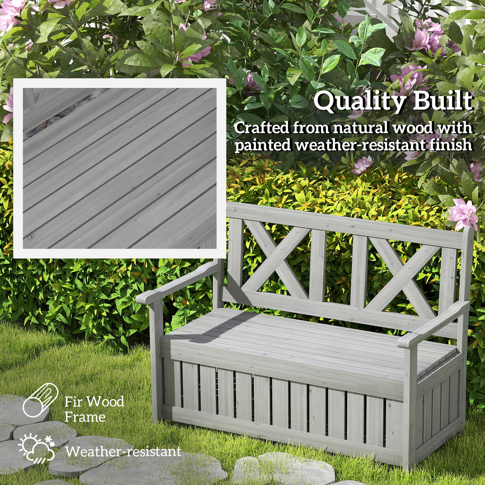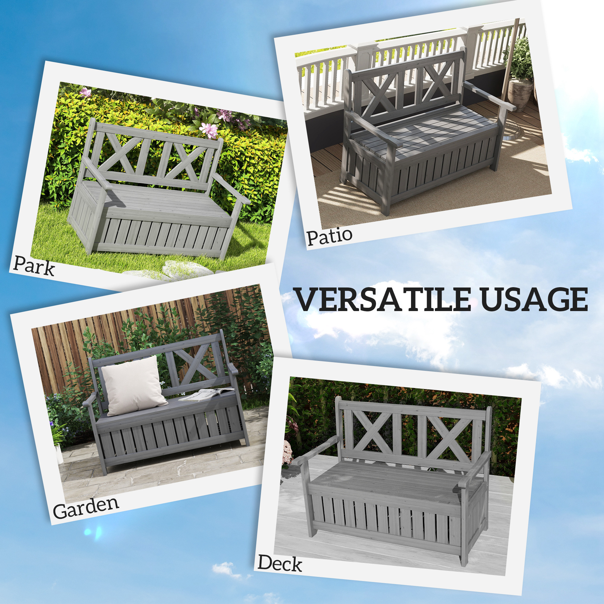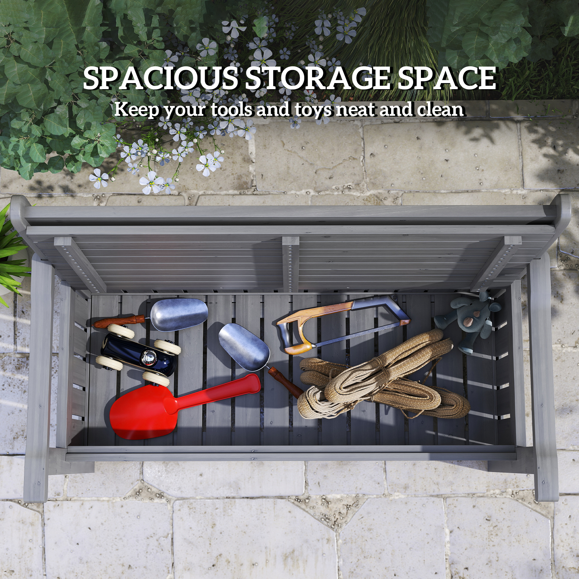 Easy storage done the stylish way. This outdoor bench from Outsunny gives you a place to sit and a handy place to keep your outdoor pieces all together. Made from solid and weather-resistant fir wood, it's crafted into a two-seater size so you can relax with a friend. The high back and armrests support your body, the cut-out panels keep you cool. Underneath the seat is the storage area, which also is surrounded with cut-out panels to prevent moisture build-up inside. It's finished with four stump feet. A must for the sunny seasons ahead.