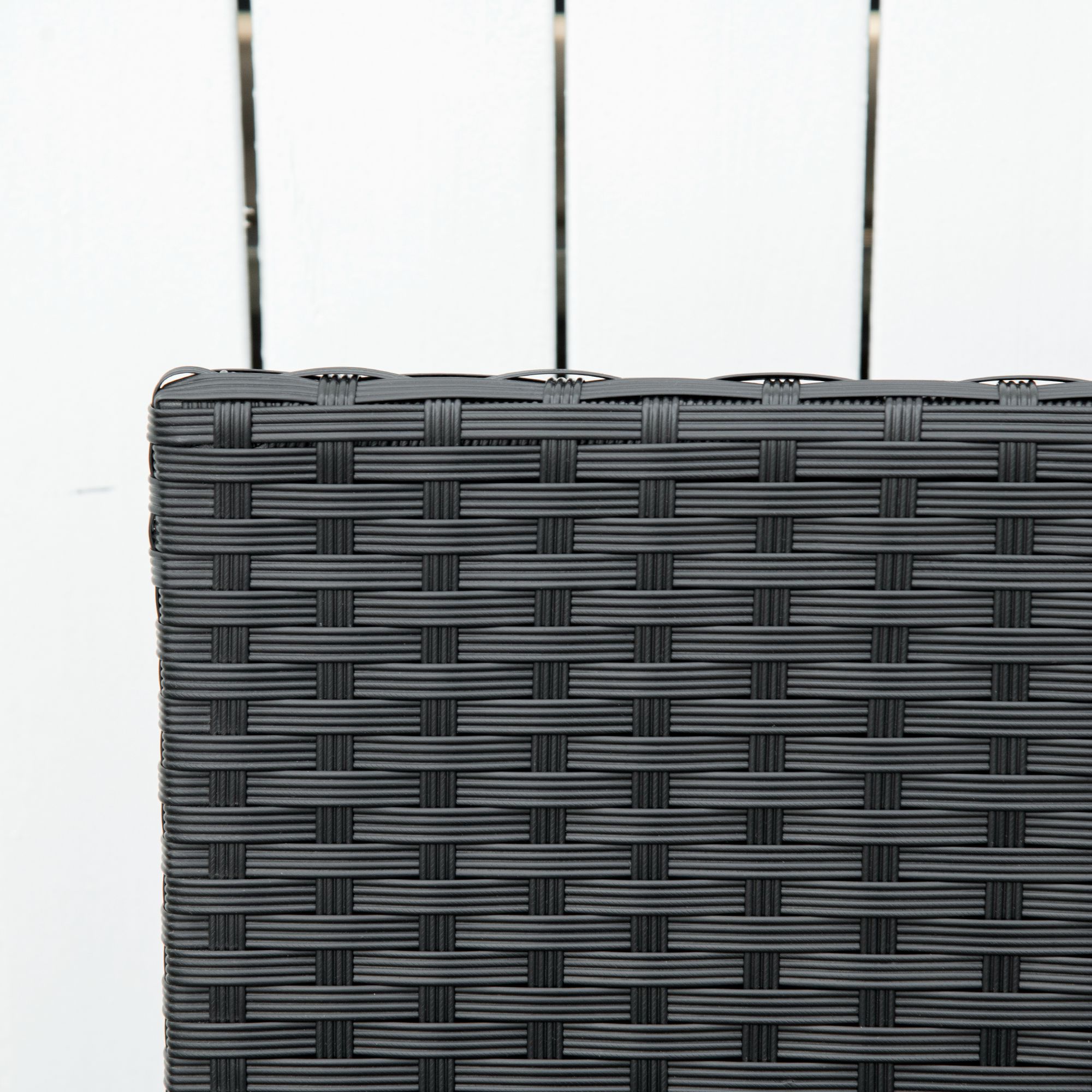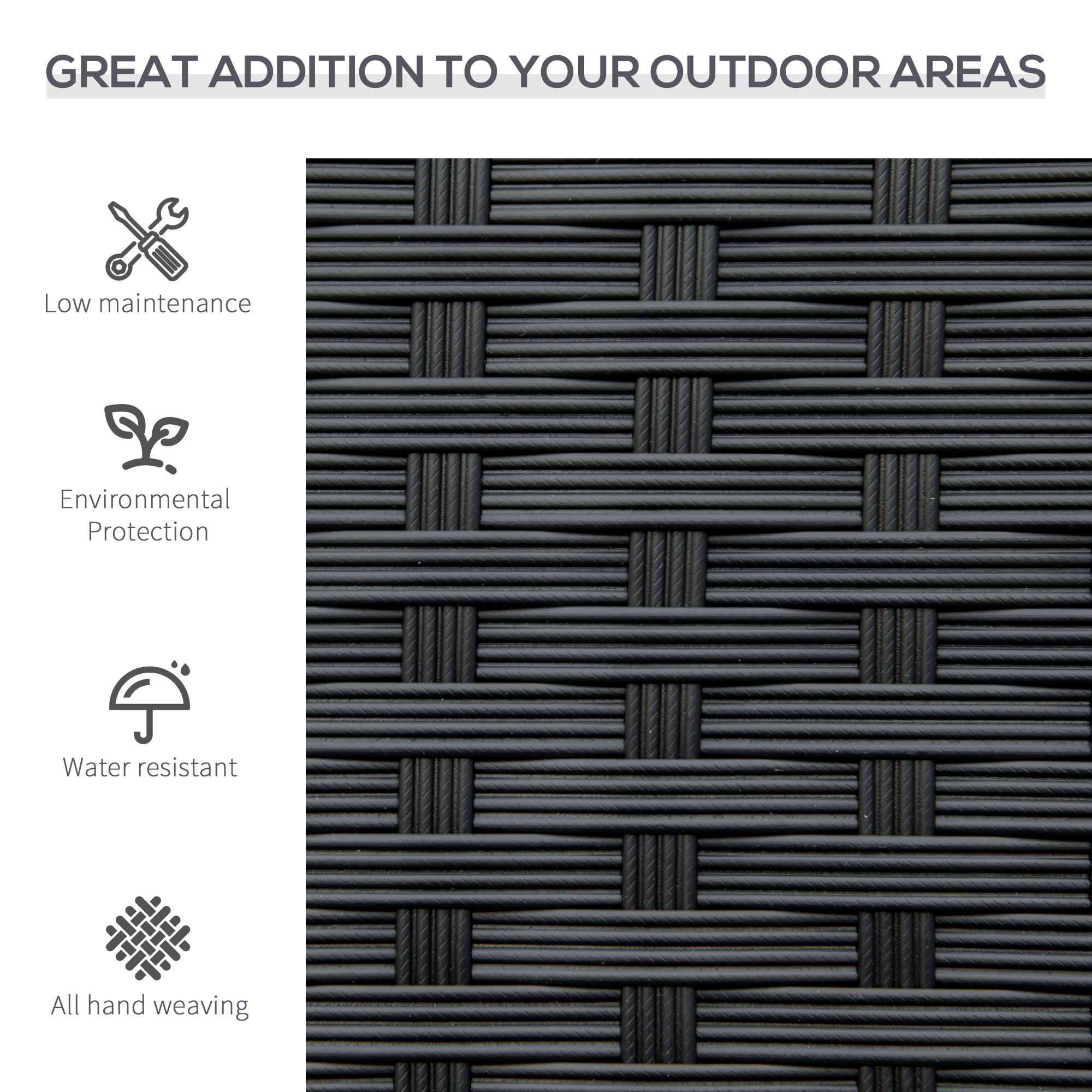 Bring a new stylish feel to your outdoors with this bench from Outsunny. It's formed of a two layer design: a metal frame for a strong structure, wrapped with PE wicker for extra protection and durability. The black colour is stylish and blends in with other garden furniture easily. The two-seater design gives room to relax with a friend, finished with a high back and armrests for support. Minimal upkeep, with maximum comfort and delight.