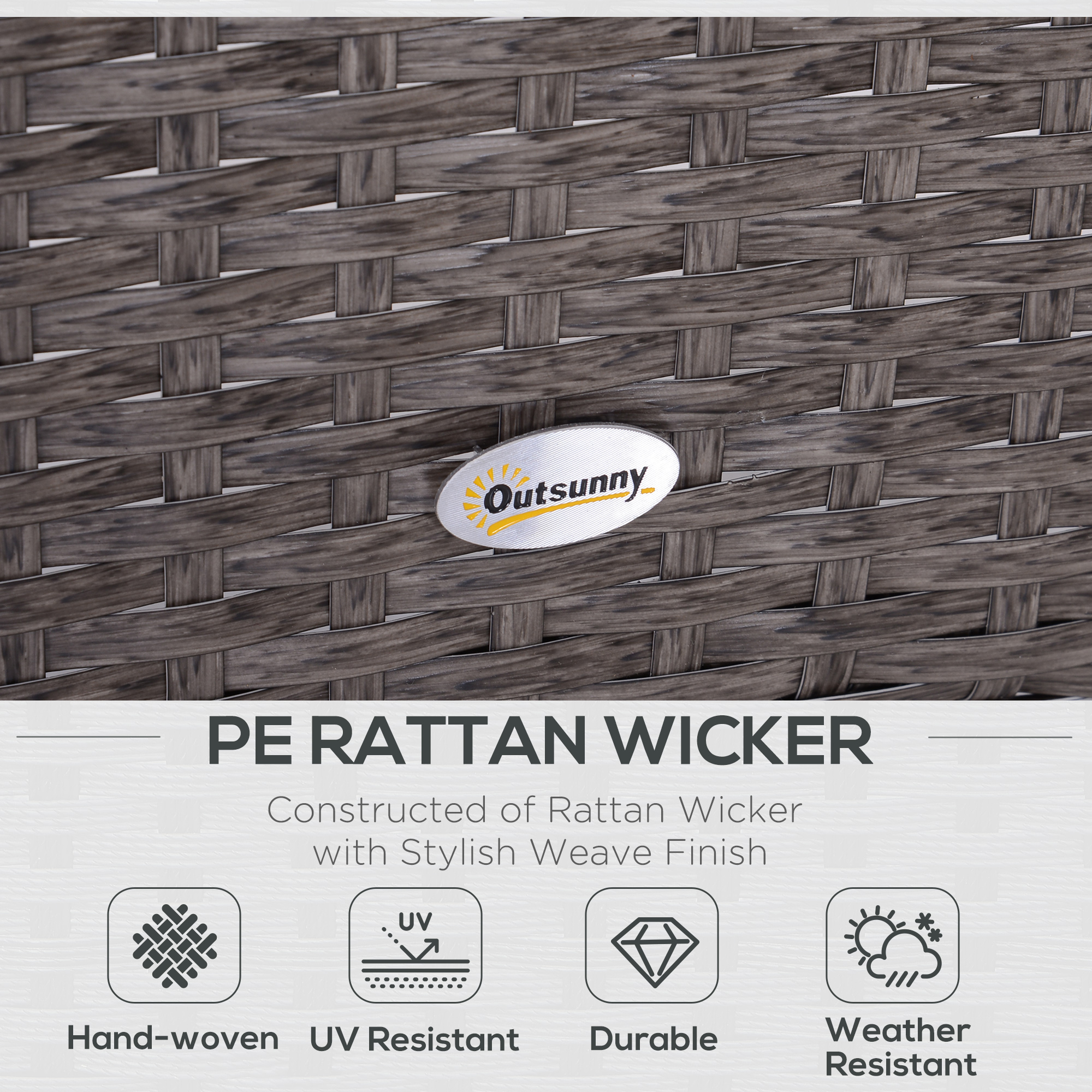 Kick back and relax in complete comfort with this rattan chair and stool set from Outsunny. Formed of five pieces, the set features two arm chairs, two footstools and a matching coffee table. Made from hand woven PE rattan, each piece is weather resistant and low maintenance, with a steel frame underneath for extra support and stability. Two plush cushions on each chair ensure you’ll be relaxing comfortably for hours on end, with the removable covers making them easy to take off and clean. With a tough tempered glass top, the table is also easy to clean, making this set a fantastic combination of style, comfortable and minimal hassle.