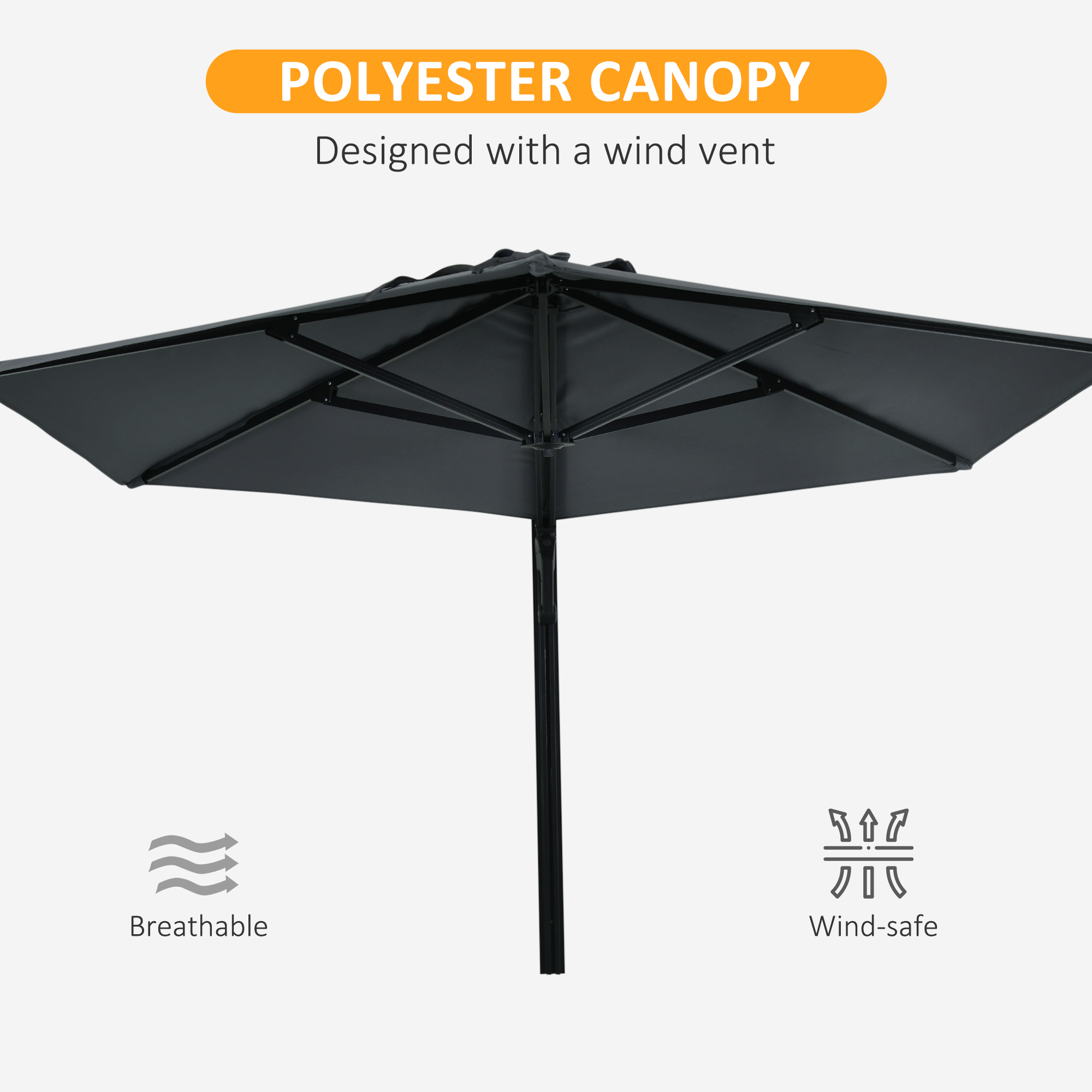 Like to read in the great outdoors? Enjoy picnics out in the summer breeze? Say goodbye to sunburns this summer with Outsunny 2. 5 m parasol. Wall-mounted design makes it save space without sacrificing shade protection. Our patio umbrella offers ample shade at an ideal position that you control with its 180° rotating canopy. Made of polyester fabric and a sturdy aluminium frame for outdoor-ready . Take the hot tub umbrella home and it will provide soothing shade for you throughout the summer.