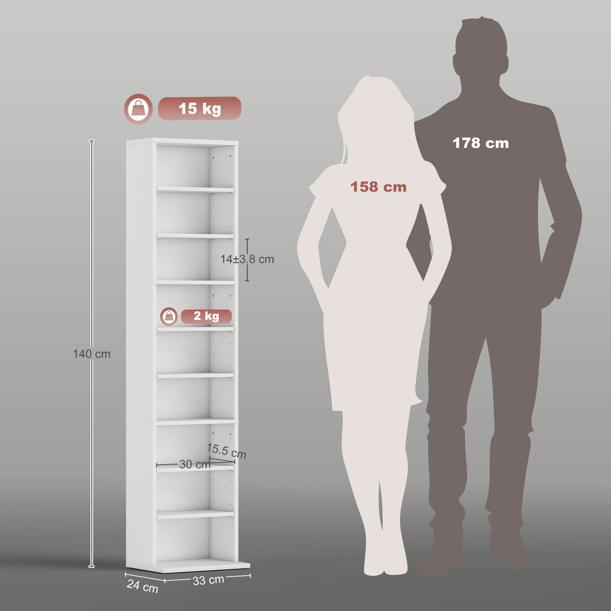 - Overall Dimension: 33W x 24D x 140H cm