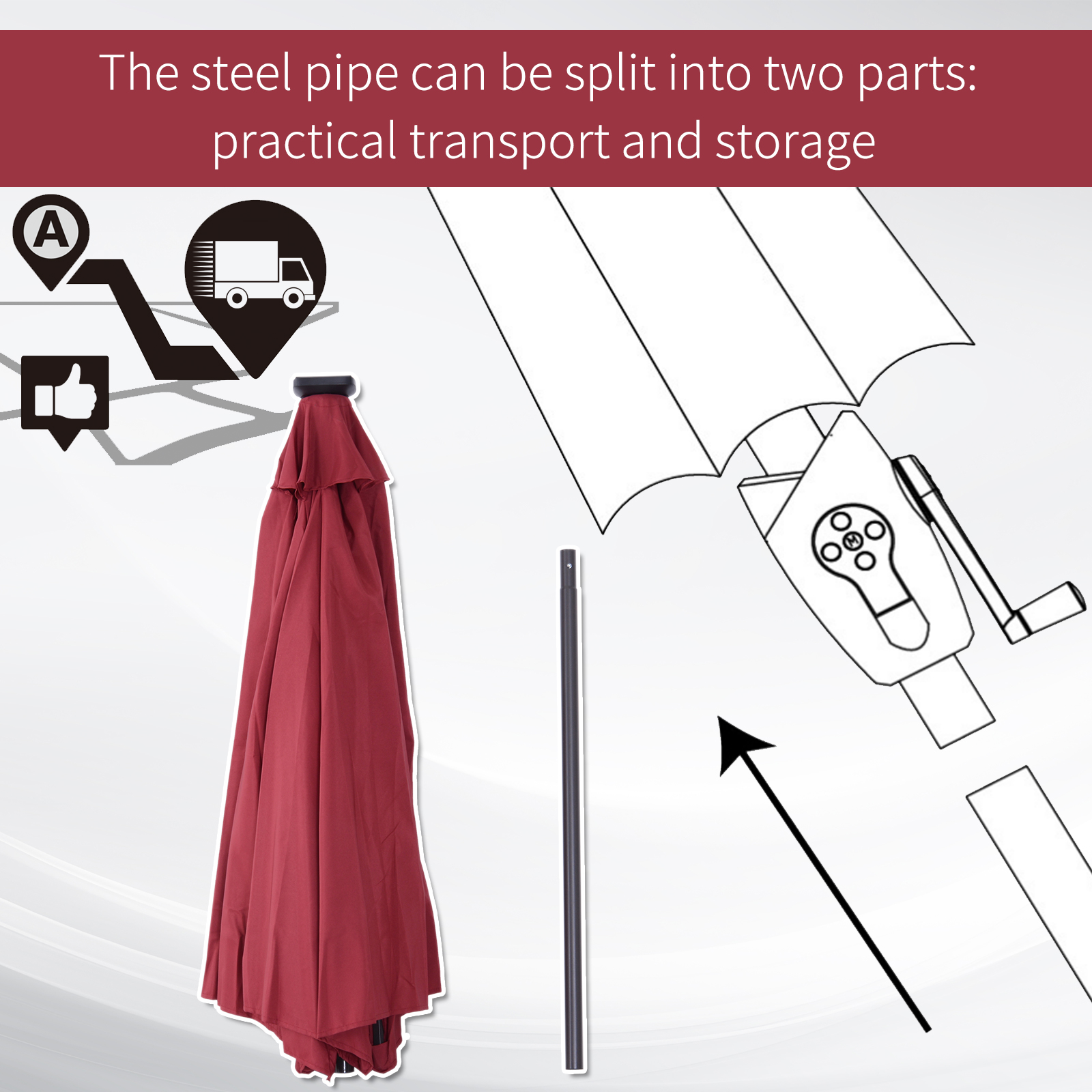 This Outsunny parasol umbrella with lights is a perfect choice to give shade on those sunny days, the deck parasol has the ability to tilt for better protection. It is suitable for your patio, garden, and can be used with existing garden furniture. The steel structure and polyester fabric give support and long-lasting features. The garden umbrella parasol is with solar-powered Led lights with adjustable 4 colours. So when it gets dark you can still continue enjoying the outdoors.