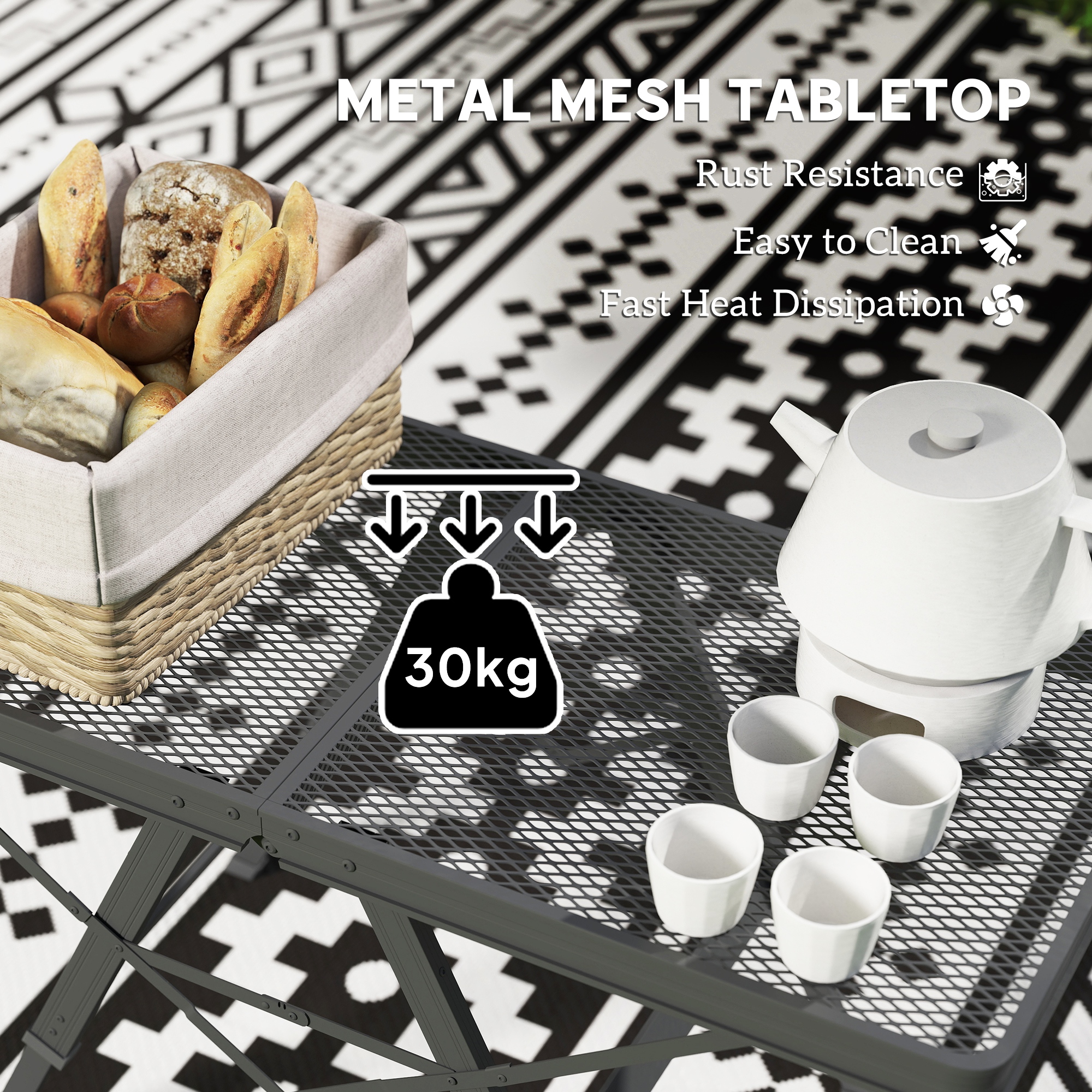 Discover the versatility of the Outsunny portable table, featuring a unique metal mesh tabletop that resists rust and water damage. With dual height adjustments (48 cm and 58 cm), this foldable table adapts to your needs, whether as a picnic, bbq, or garden table. Effortlessly set up for any indoor or outdoor occasion and just as easy to store.