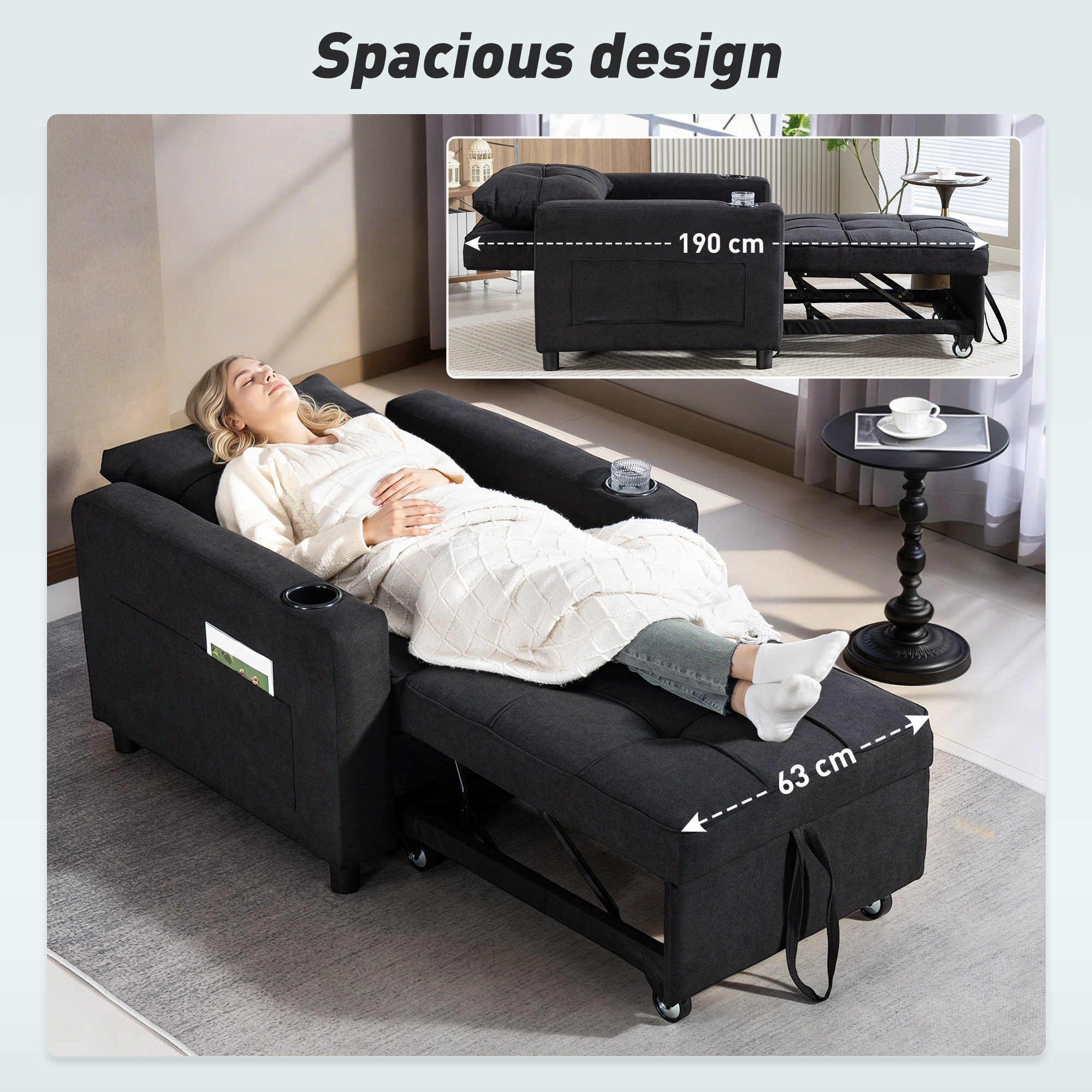Features: - Three-way design: Armchair, to recliner, to single bed. Use it how you want