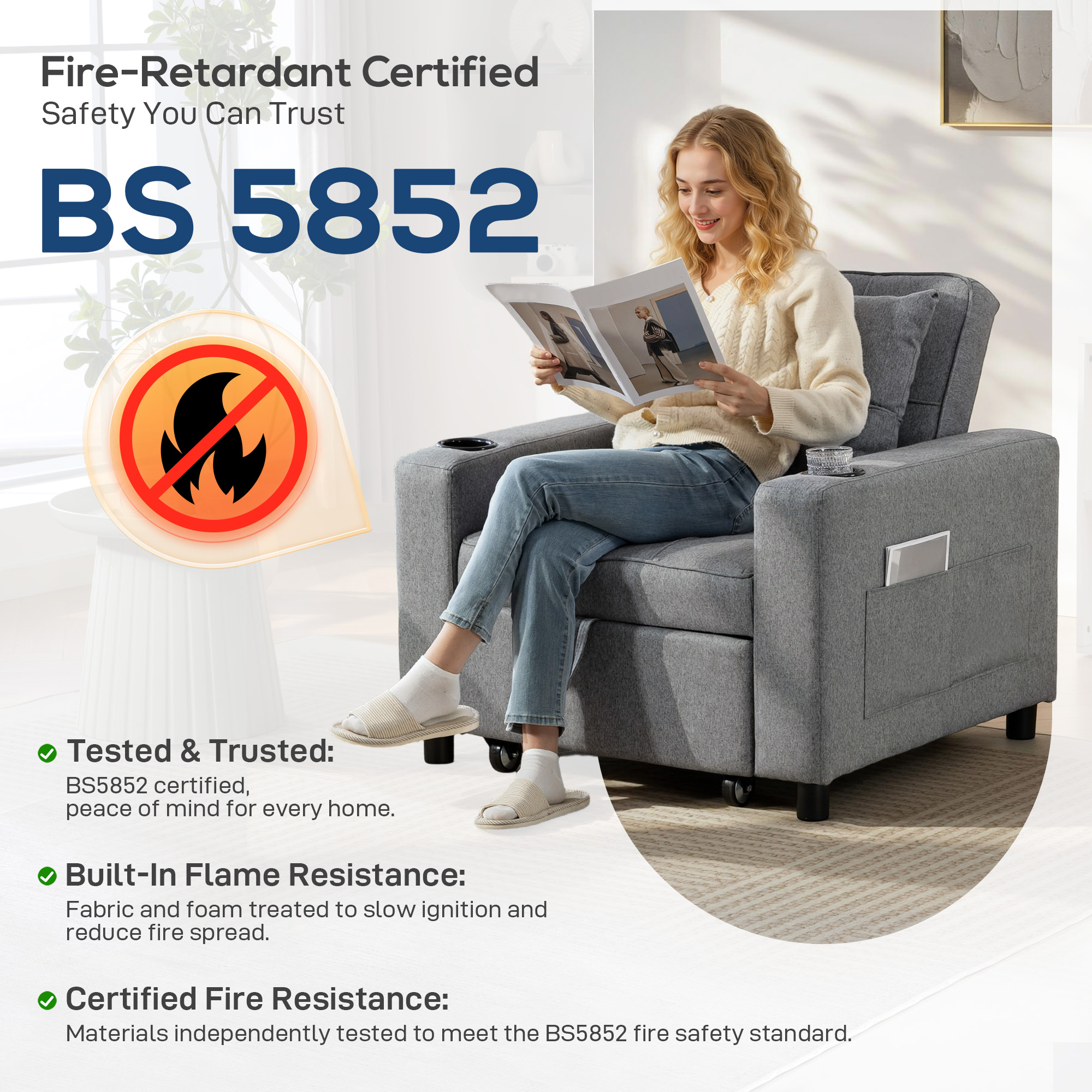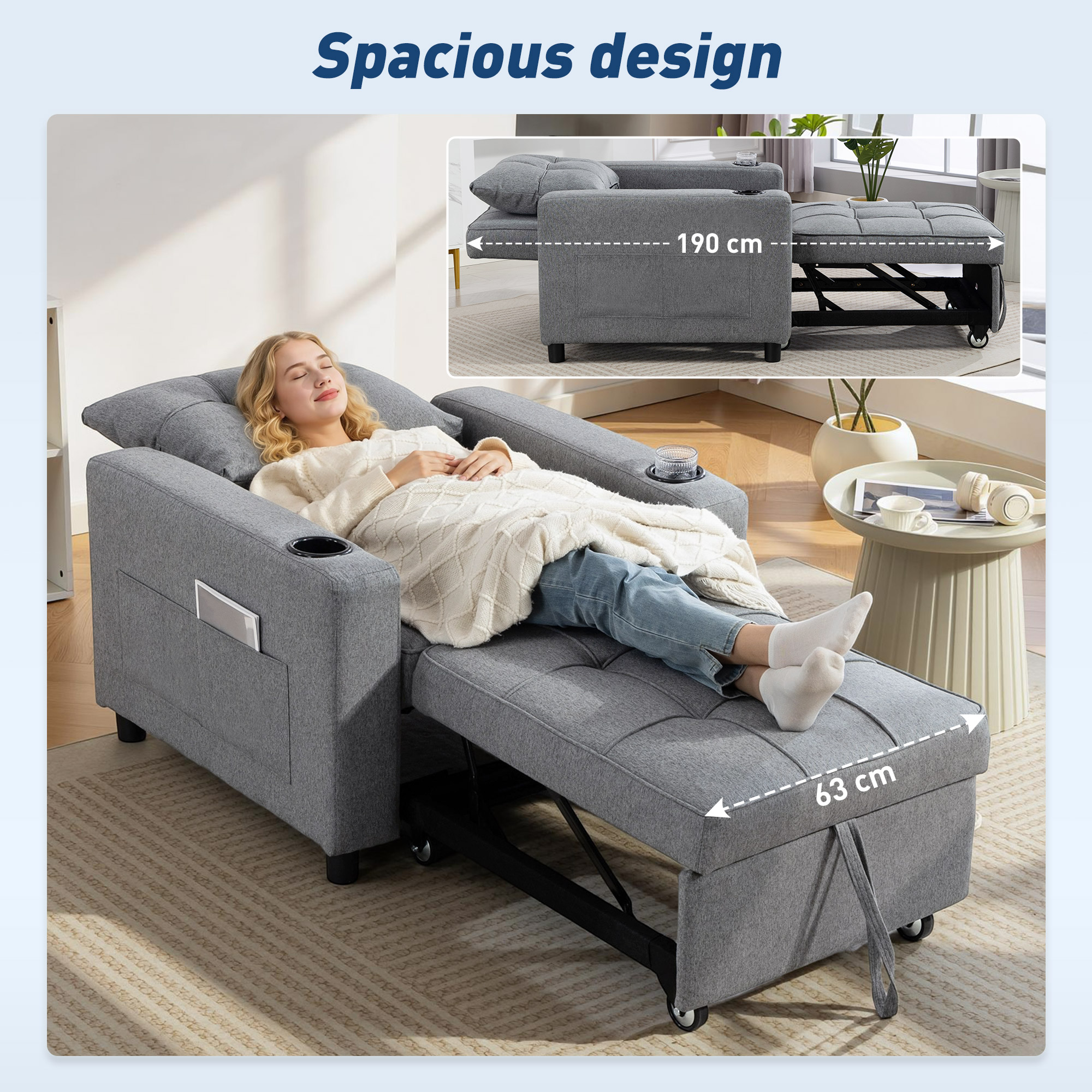 Features: - Three-way design: Armchair, to recliner, to single bed. Use it how you want