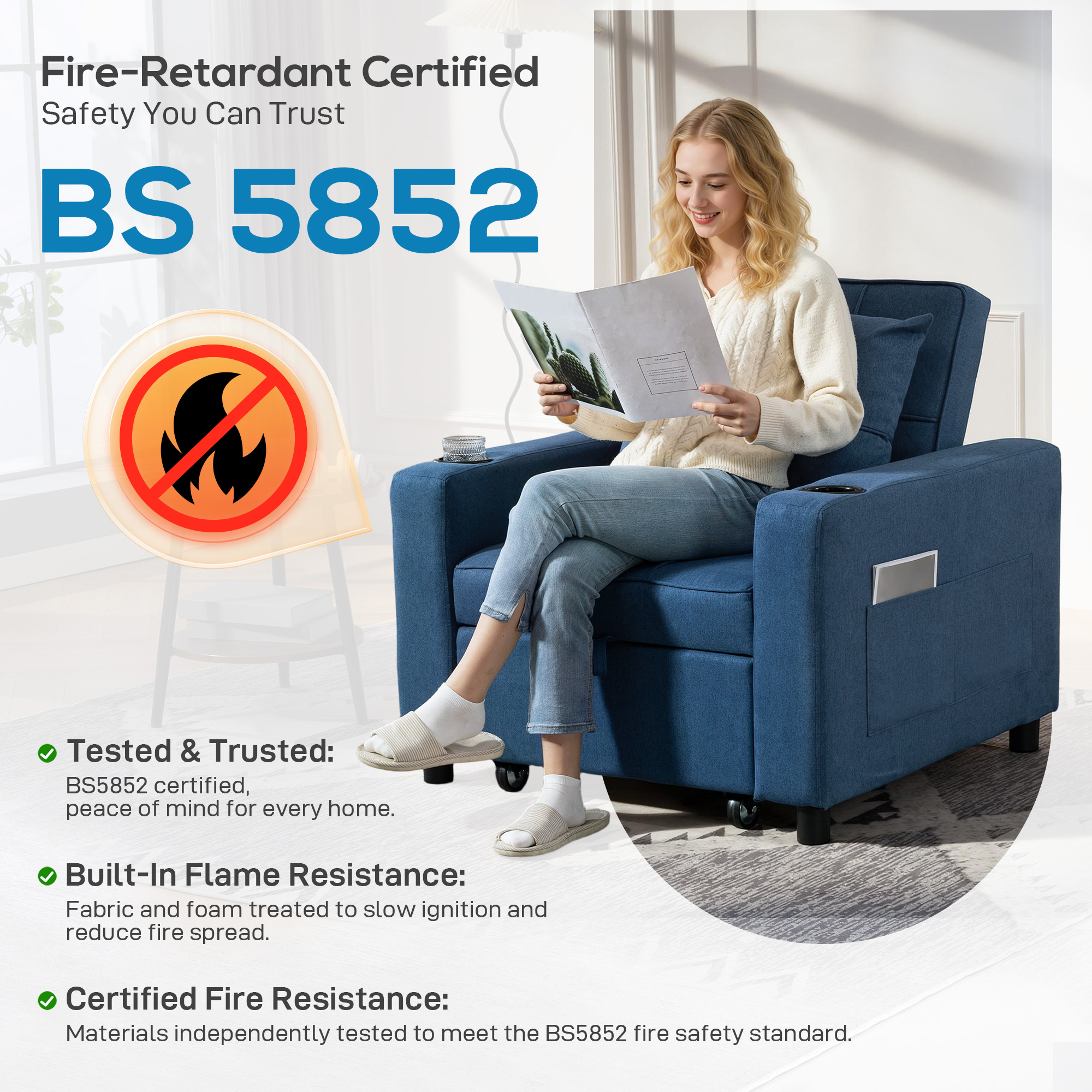 Features: - Three-way design: Armchair, to recliner, to single bed. Use it how you want