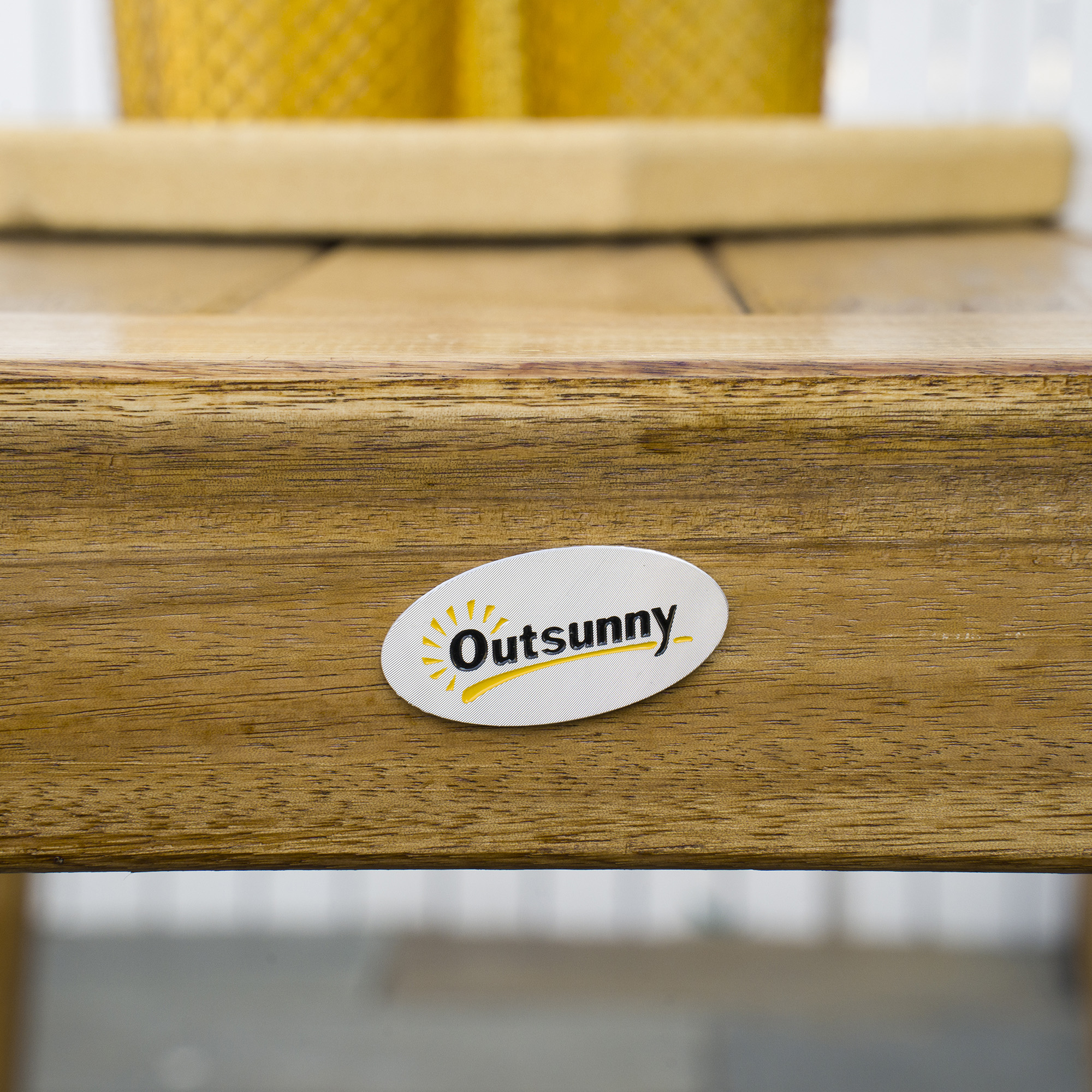 A set for everyday garden and outdoor space - this Outsunny dining set. Comes with a four-person table and two benches: holding up four people. Each piece is made from acacia wood: strong and sturdy, with a varnish coating for light protection. The wood retains the natural character: beautiful and sleek.
