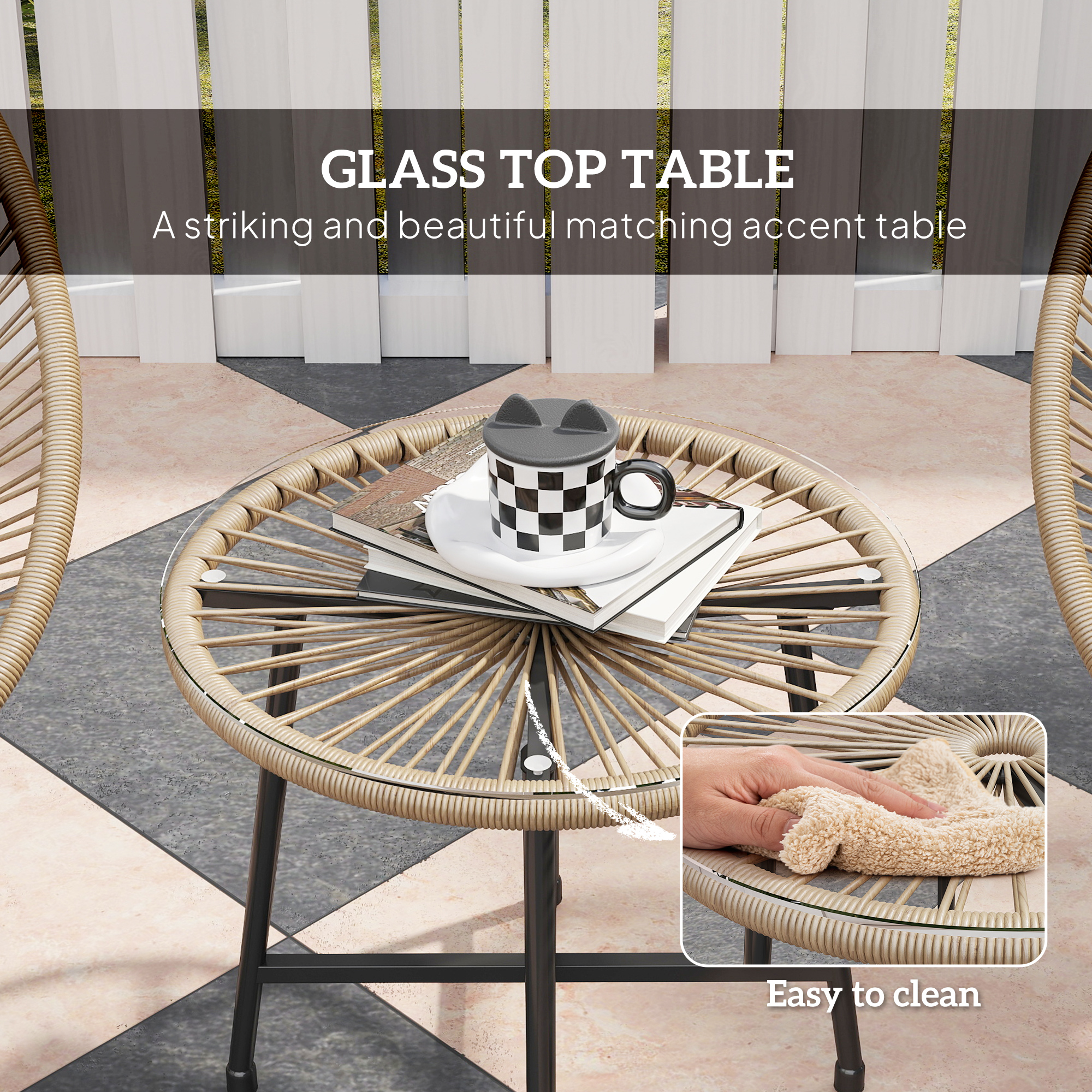 - Material: Steel, PE Rattan, Tempered Glass