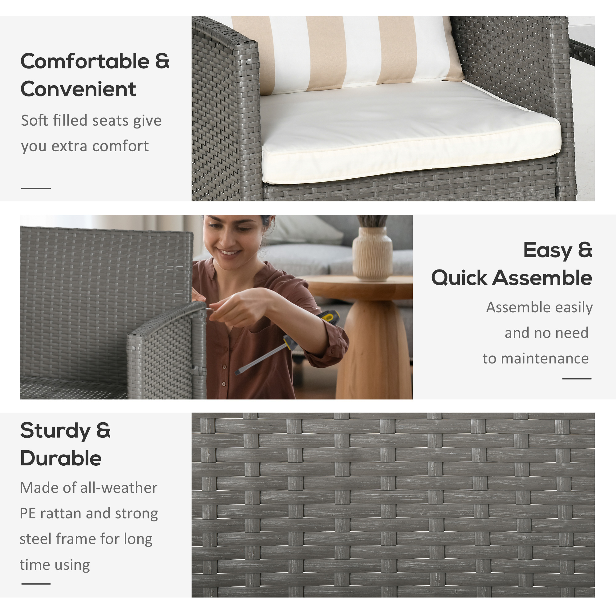 Make the right choice for the upcoming Summer season – choose this three-piece dining set from Outsunny for endless hours of comfort and joy. In a contrasting cream tone, thick cushions are placed on the seats for comfort, with a stylish striped bolster cushion also included for extra style – all with removable covers which can be washed clean to keep them fresh and hygienic. The set is completed with a matching two-tier table, with a tempered glass top for a chic finishing touch.