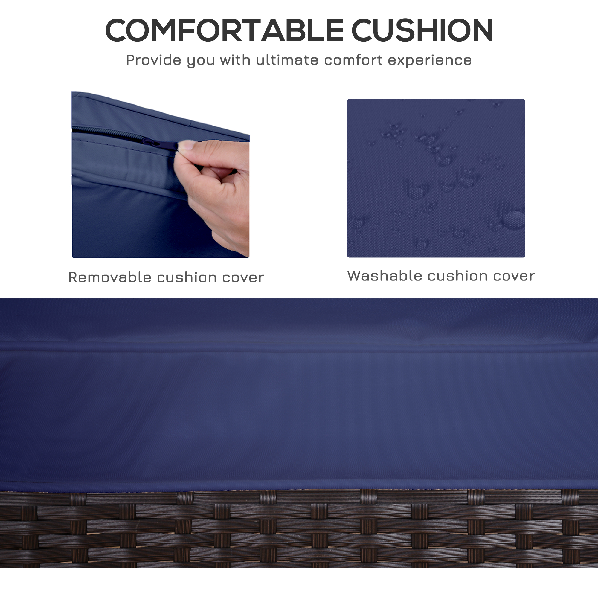 This outdoor bistro set made of PE Rattan is an ideal choice for your garden, patio or balcony. Combined with an steel frame structure and covered with rattan, this set is the optimal set to have. Comes with two seats with cushions and a table with a glass top to place drinks and magazines. The stylish modern design can fit into any style of your home and garden.