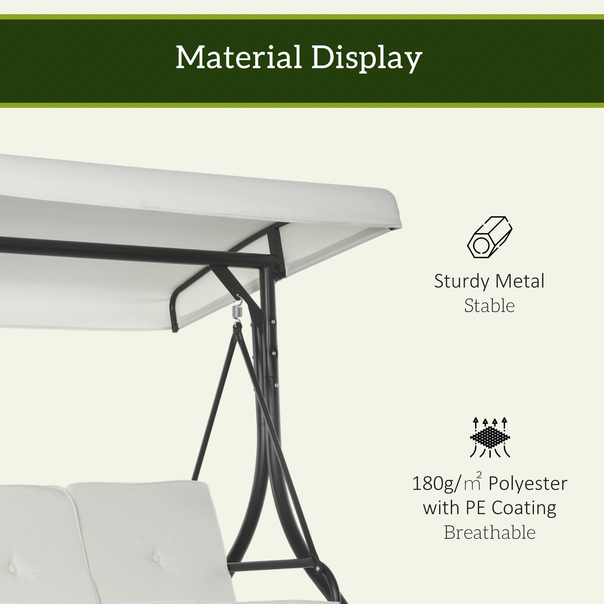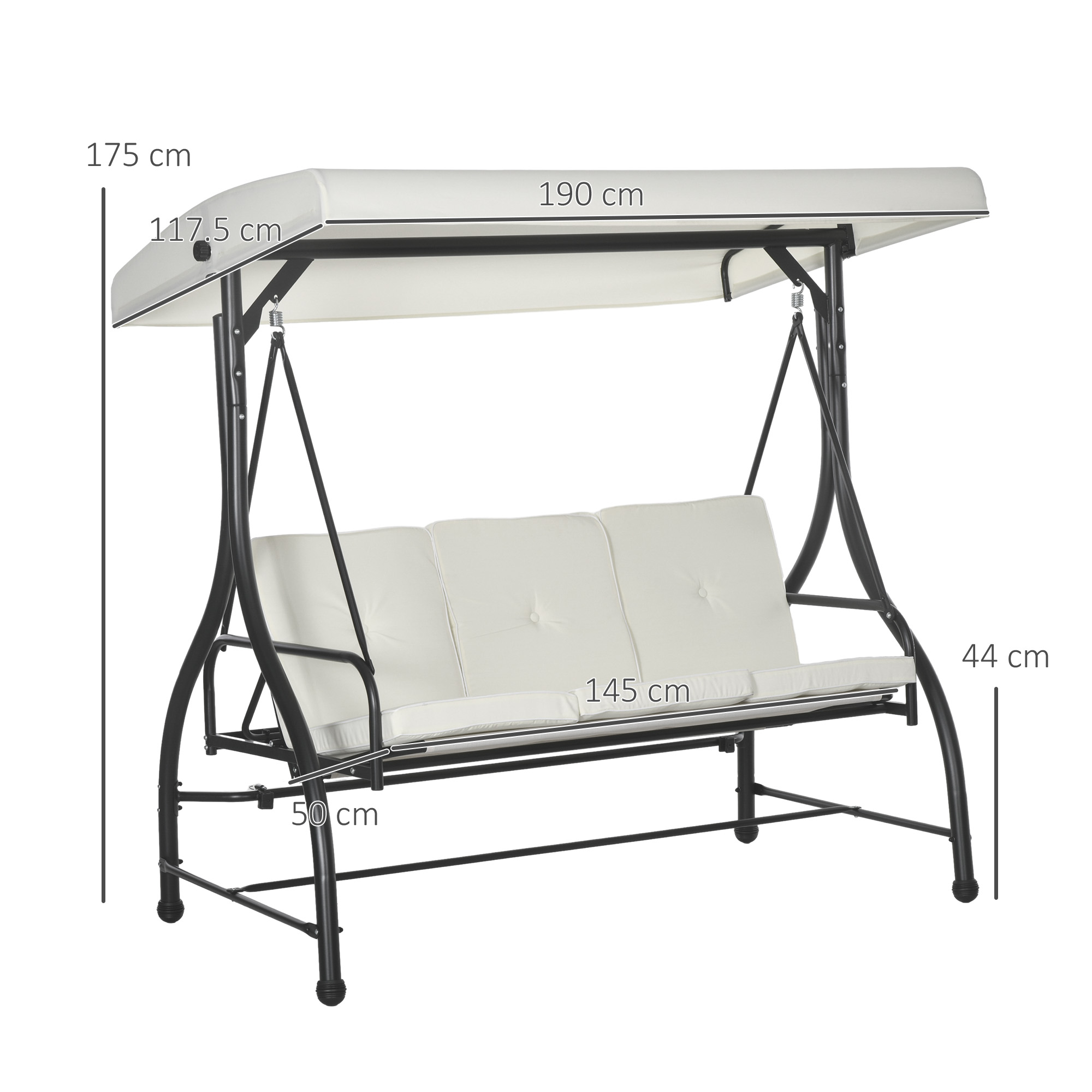 This Outsunny 3 seater garden swing is a welcome addition to any outdoor living space. It has a capacity to seat three people so you can enjoy with your friends. The adjustable canopy will keep you covered from sunlight and light rain. The swinging chair seat and back cushion is padded for comfort - the back can be folded flat to transform this into a bed.