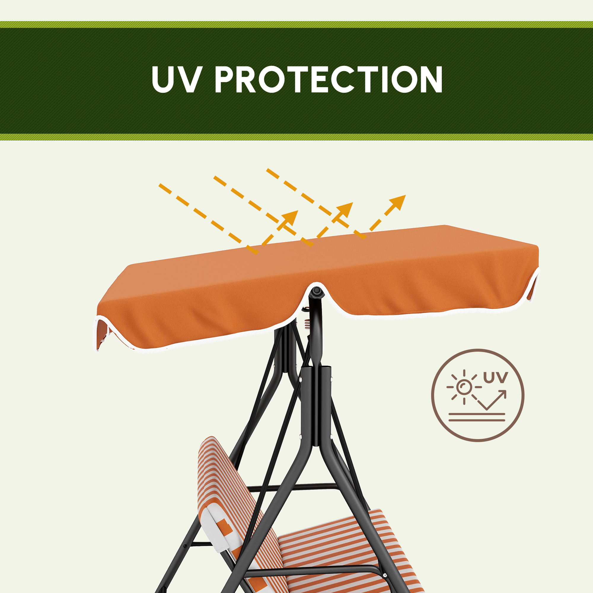 Relax in style and comfort - do it with this Outsunny swinging chair. Seats up to three people: plenty of room to relax with friends or grab extra room for yourself. The adjustable angle of the canopy allows you to shield yourself from mild weather above at different positions. With a padded seat and high back, you'll be relaxing comfortably and with support. Sport stripes for style, this season and beyond!