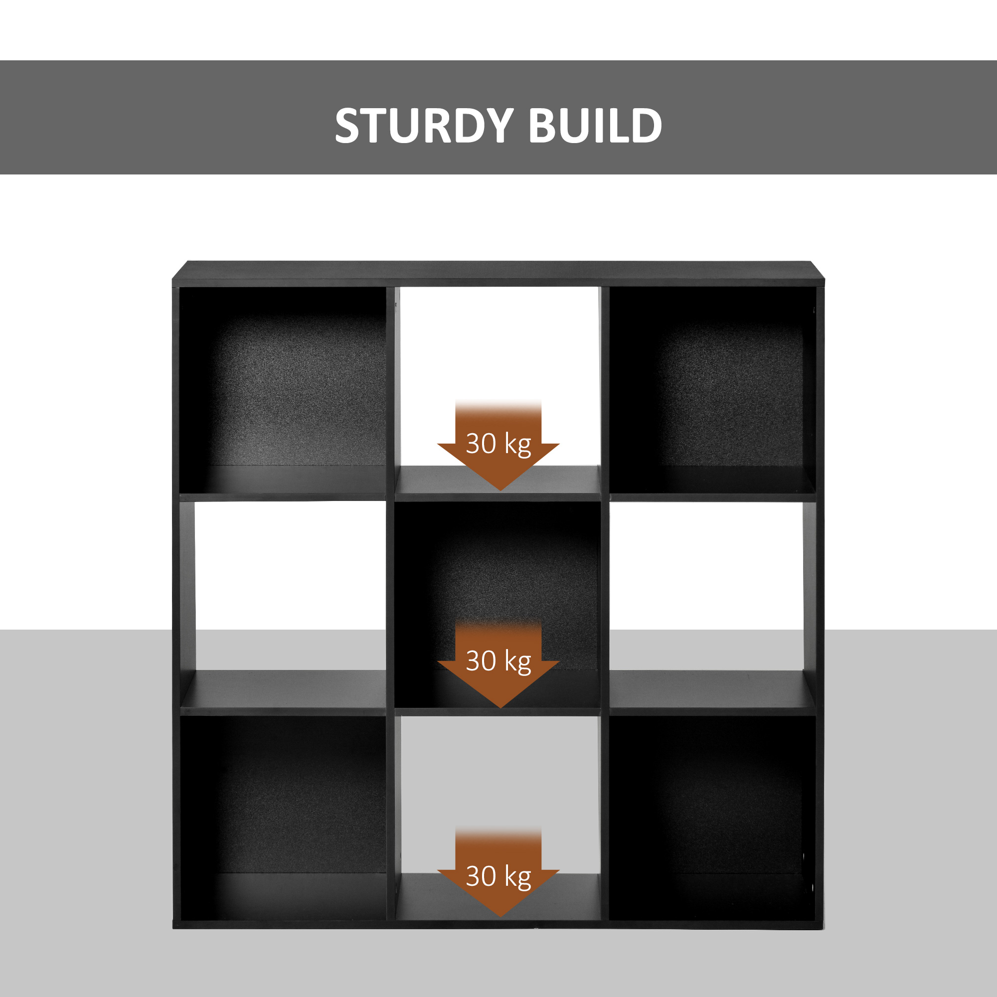 - 9 cubes provide generous storage space for accessories and essentials