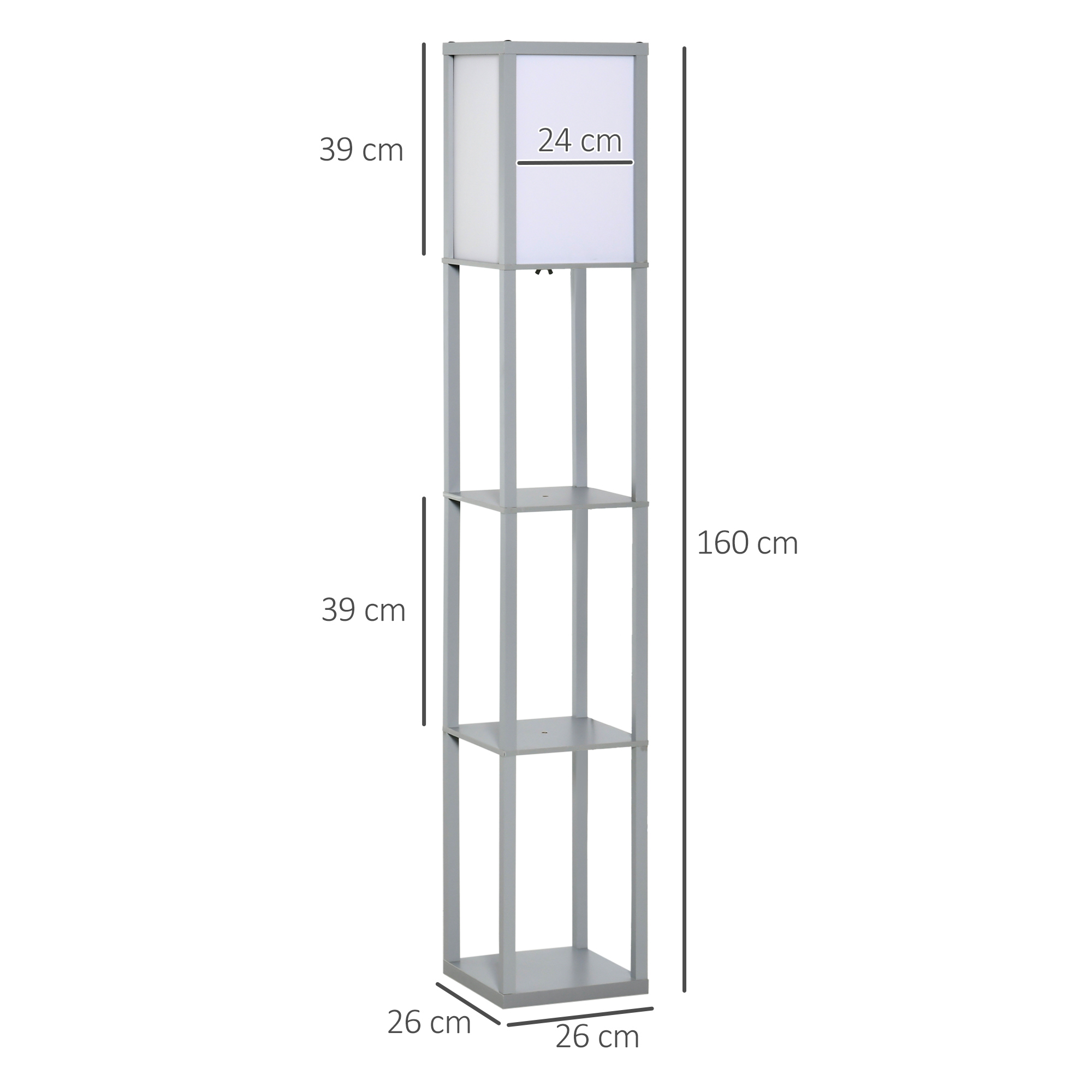 Illuminate your home the HOMCOM standing lamp, merging light, beauty, and storage elegantly and practically. Perfect for decor enthusiasts, this lamp offers three shelves for displays and a warm top light for a warm and inviting glow. Its sleek white shade complements any interior style, and the convenient foot switch ensures effortless operation. Crafted with a durable melamine coating, this lamp is a stylish and resilient addition to any living space, enhancing both ambiance and organization.