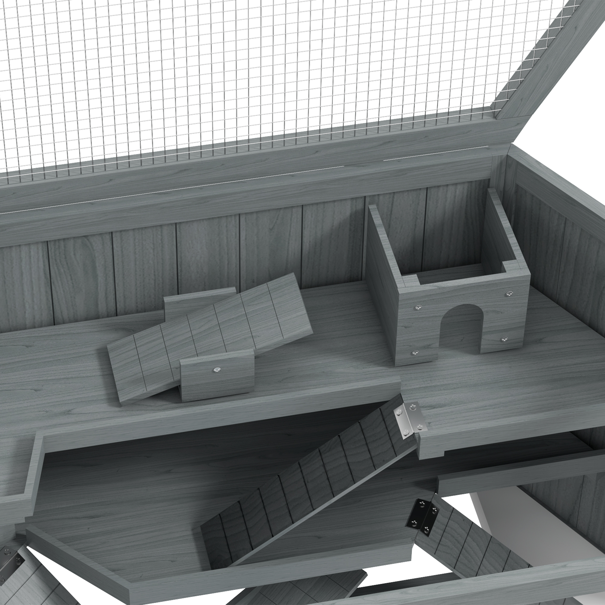 - Hinged roof keeps their area ventilated