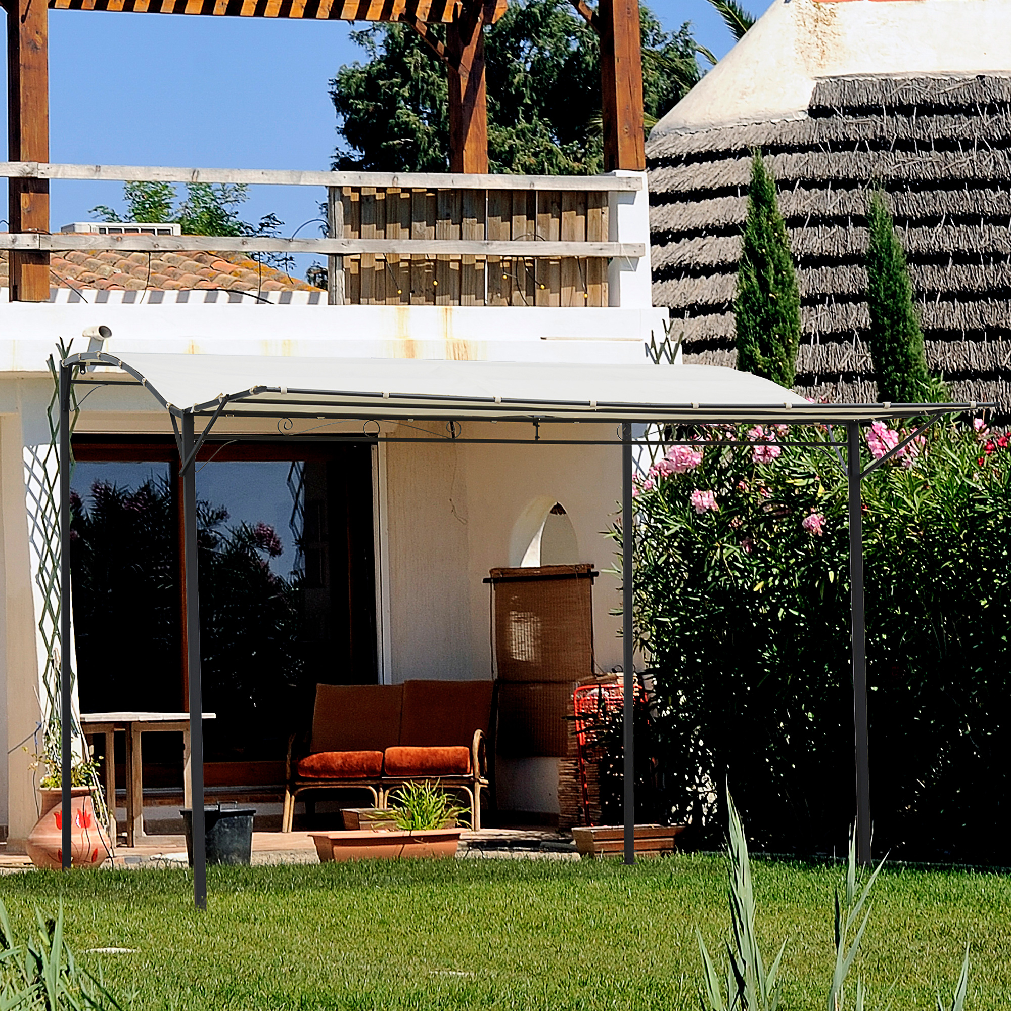 This Outsunny pergola canopy is exactly what your garden has been missing. Made from powder coated steel for strength and durability for years to come, the lean to pergola frame is crafted into a wide structure which accommodates the polyester canopy top, helping to provide plenty of shelter and protection from UV rays and light rain. Extendable on the front, the canopy can be easily adjusted to provide more or less shelter, allowing you to easily make the most out of the sun and outdoors.