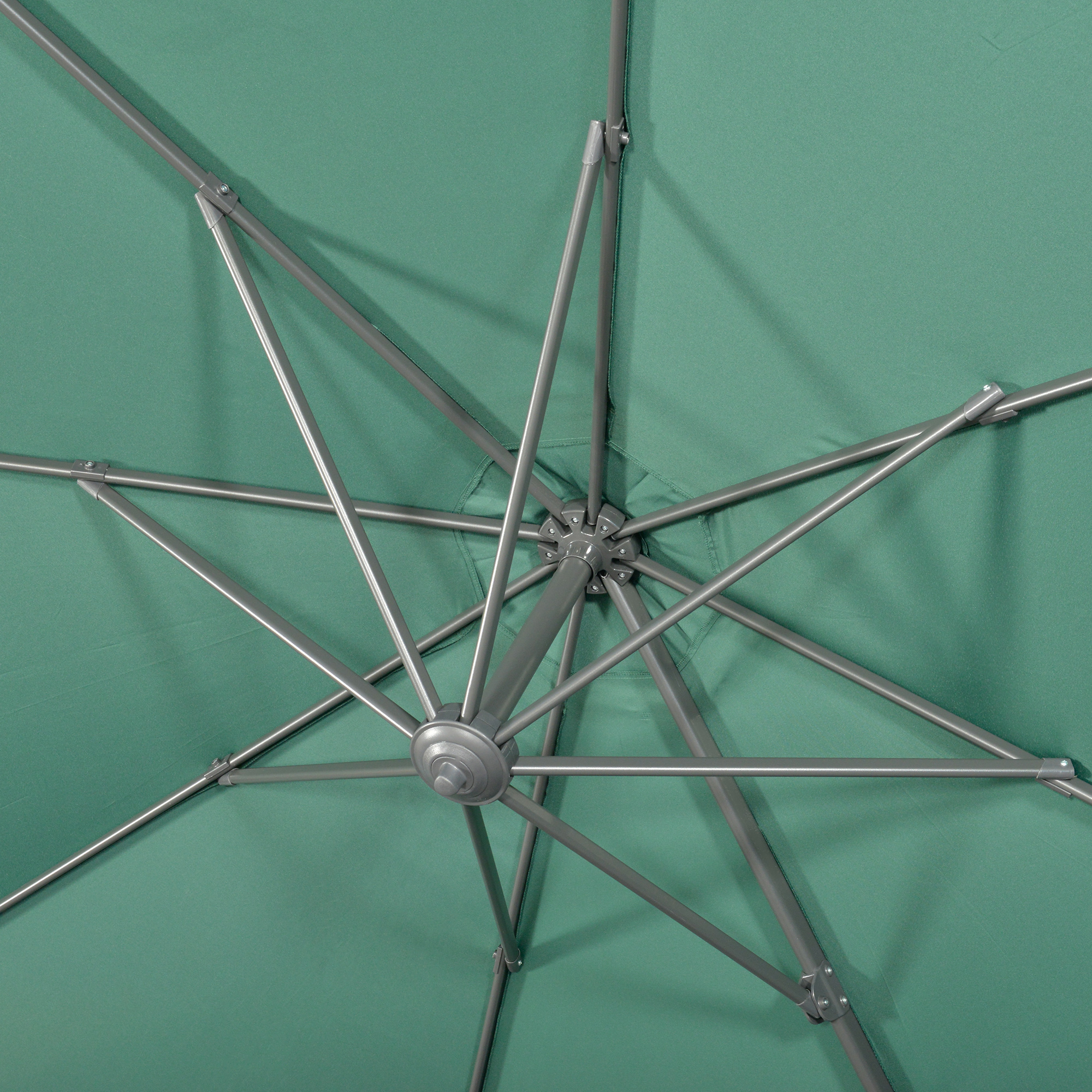 Keep yourself protected whilst enjoying the sun: go for this Outsunny cantilever parasol. An aluminium frame means a strong core, with eight metal ribs connecting to the canopy for extra support. The canopy can be set to five different angles, it move a full 360° sideways - pick the shade position you want. Crank handle to open and close easily. Comes complete with a cross base (weights are required).