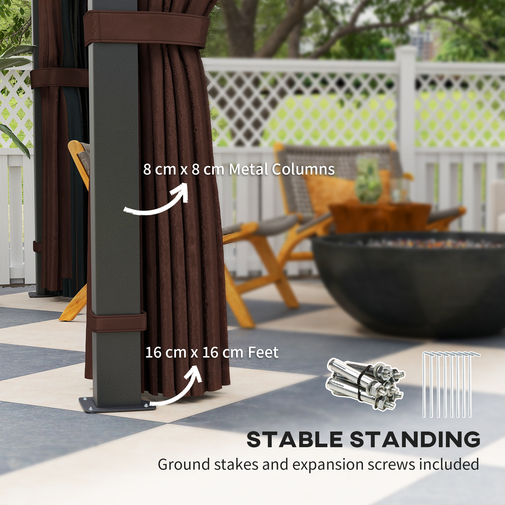 Transform your garden into a haven with the Outsunny polycarbonate gazebo. Featuring 7mm thick polycarbonate panels, this waterproof gazebo shields you from UV rays while keeping you cool with its clever two-tier airflow design. No more puddles, thanks to its smart water gutter system. Enjoy a serene outdoor shelter with sides, great as a heavy-duty, permanent fixture for any patio.