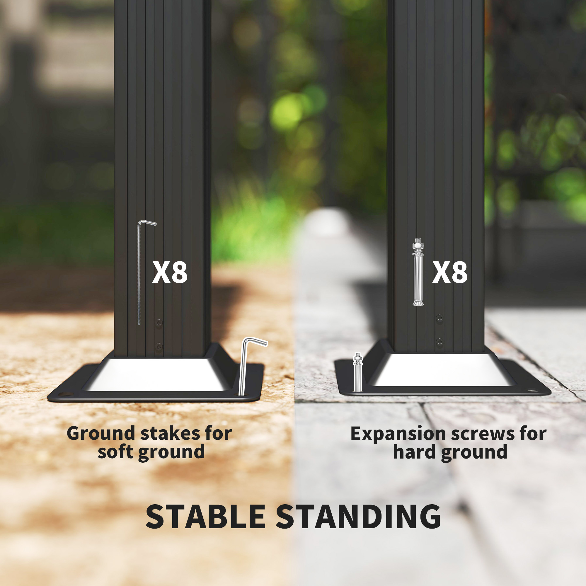 - Windproof Level: 5-6 (use ground stakes), 6-7 (use expansion screws)