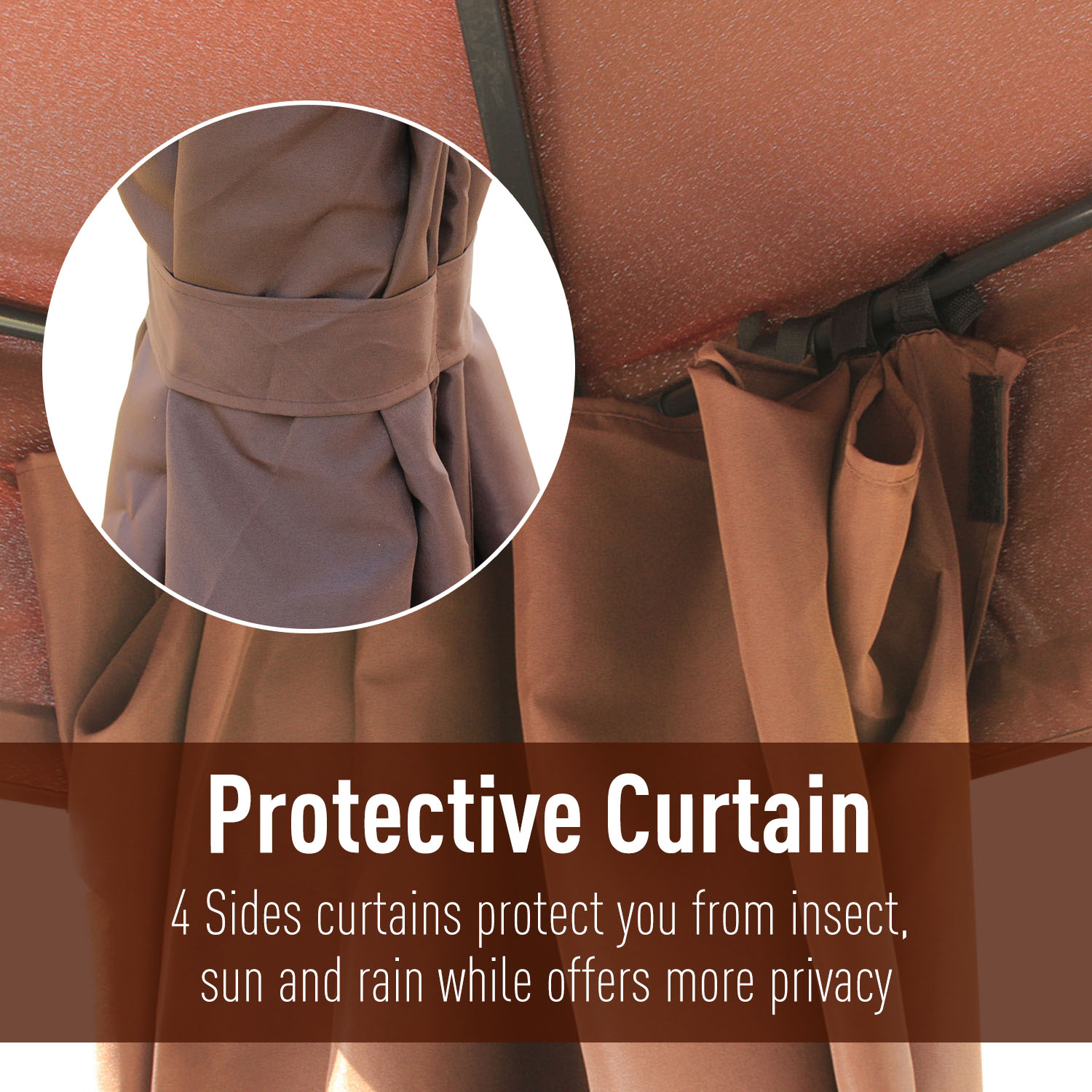 - Velcro straps allow easy installation and attachment to gazebo.