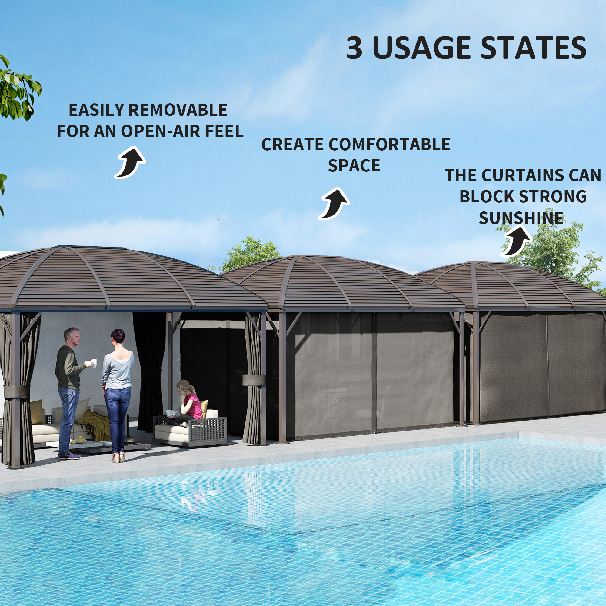 Features: - Steel hardtop and rust-resistant bronze tone aluminium framing