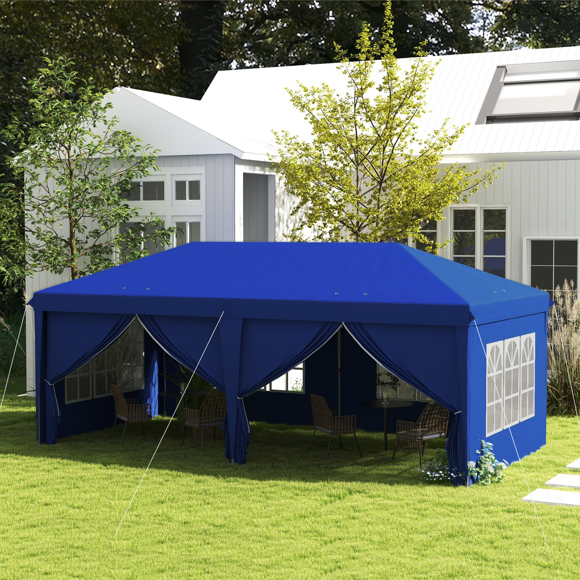 This Outsunny 3 x 6m gazebo is a great, no-fuss garden shelter. It is excellent for family parties, weddings, picnics, sports events, outdoor vendors, craft fairs, job sites and camping trips. The pop-up design makes it easy to set up and take down. The garden gazebo also comes with a portable carrying case. A powder-coated steel frame means a strong standing structure. With removable walls, you can create an open or closed atmosphere quickly and easily.