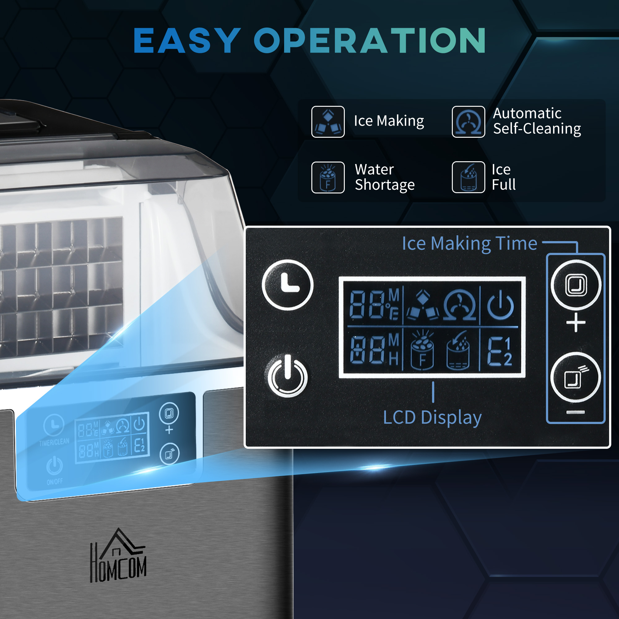 Cool drinks, within an almost instant - make them deliciously chilled with this HOMCOM ice making machine. Compact to stand in smaller spots, it's powerful: producing 24 cubes every 18 minutes - and 20kg in 24 hours - it's perfect for those summer parties, BBQs and events. You can customise the cube size easily - make them big for special cocktails, or keep to standard size for regular drinks. Use the automatic cleaning function to save you effort and ensure it's ready for the next use.