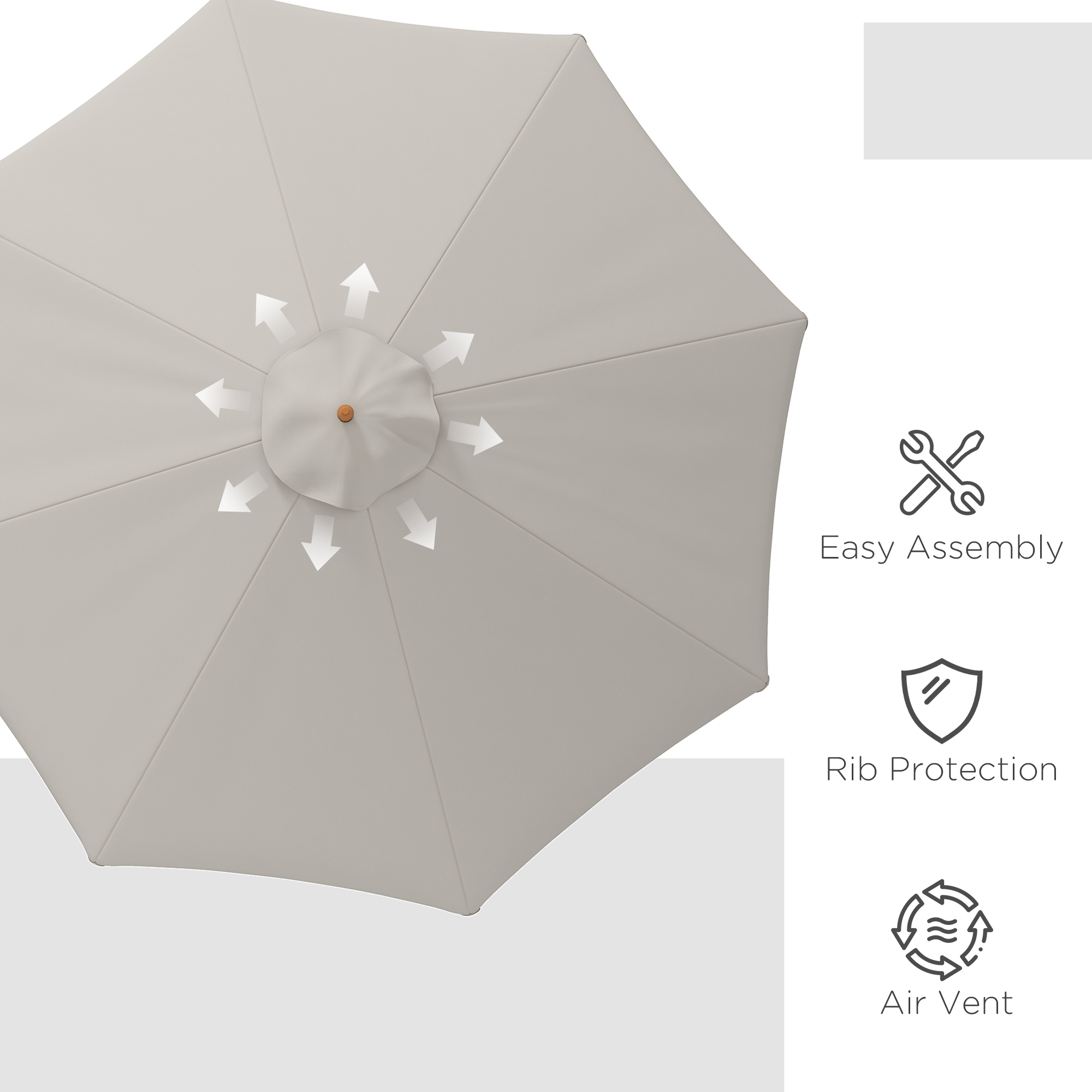 - Rope pulley mechanism opens/closes sun parasol canopy easily