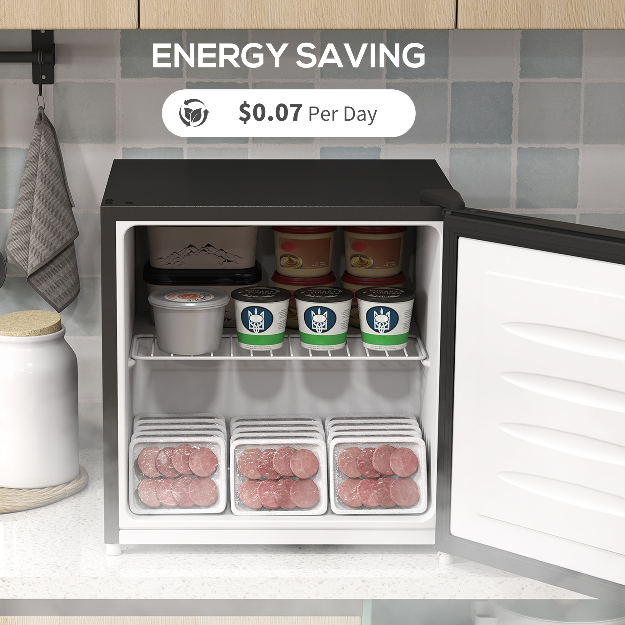 Fantastic freezing, even in the smallest of spaces with this HOMCOM 35L freezer. Its capacity offers enough room for frozen meals, snacks and other essentials. The 48. 8cm x 47cm size means this small freezer is great for countertops - suitable for small spaces, whether that's shared or individual use. Adjustable the temperature between -24℃ to -14℃: pick a level best for your needs. It comes with a reversible door: let it open left or right.