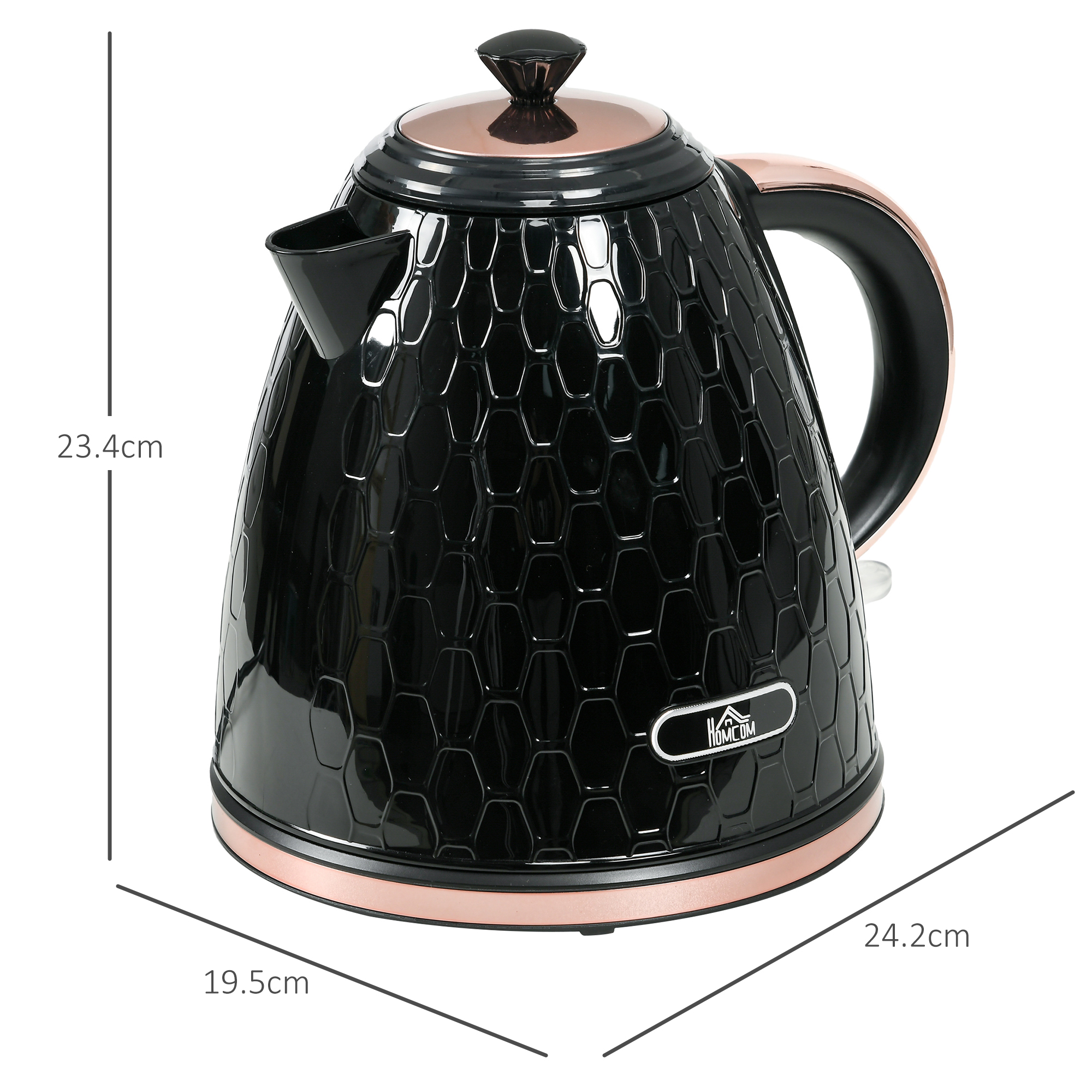 - Kettle Dimension: 24. 2L x 19. 5W x 23. 4Hcm (with base)