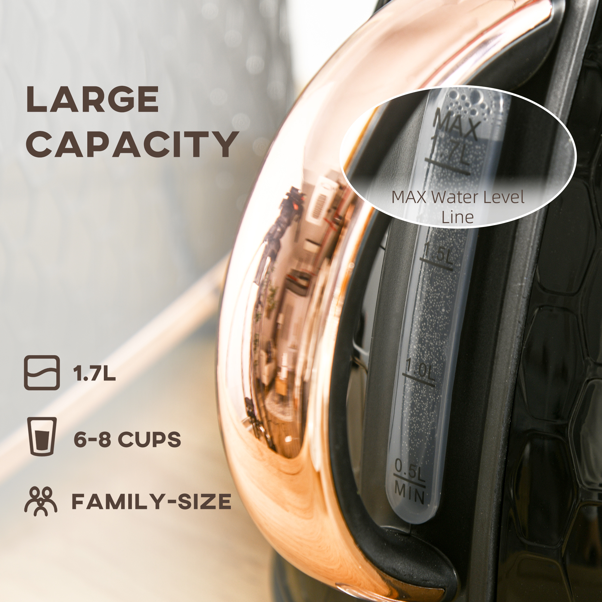 - Kettle Capacity: 1. 7L(Max), 500mL(Min)