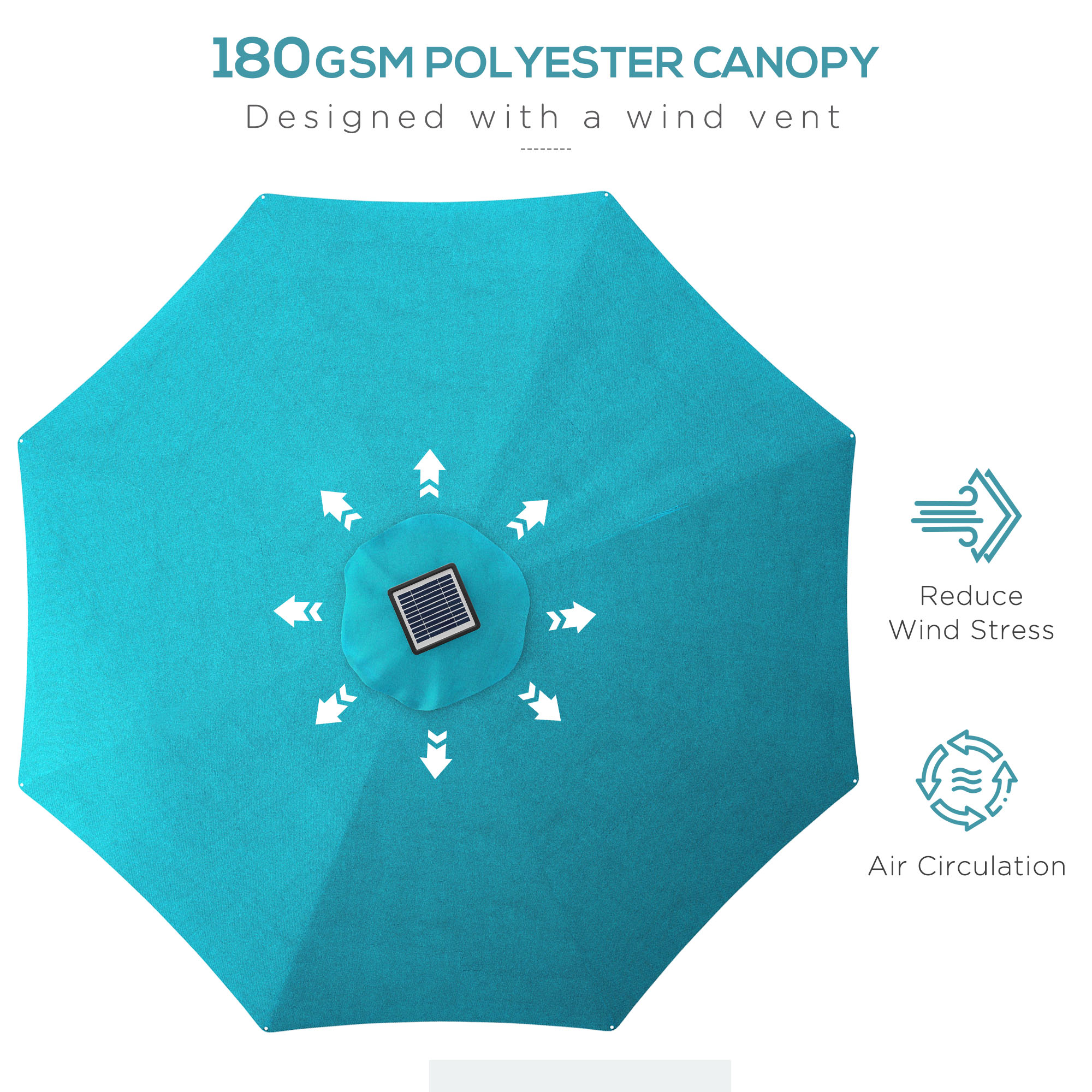 Transform your garden with this Outsunny solar parasol. The integrated lighting extends your evenings. Four light modes, from a soft glow to daylight brilliance, all powered by convenient solar charging. The aluminium frame means a strong core. To keep standing steady, use a minimum 25kg weight.