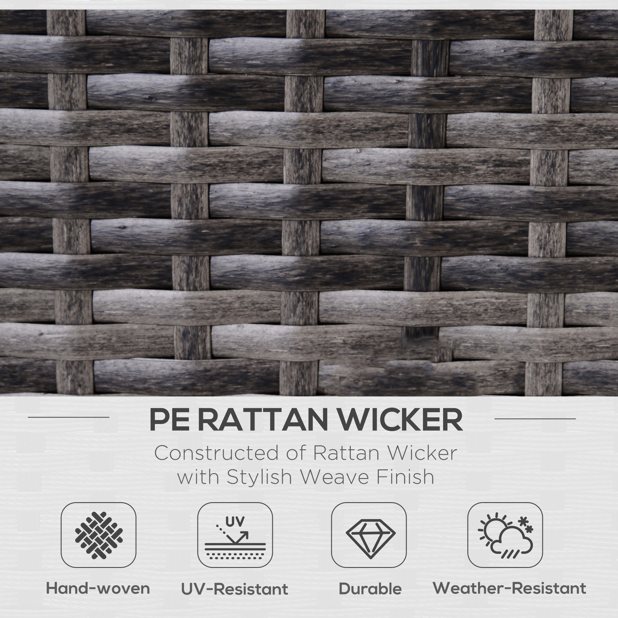 - Metal frame for strength, wrapped in UV and water-resistant PE wicker rattan for durability outdoors
