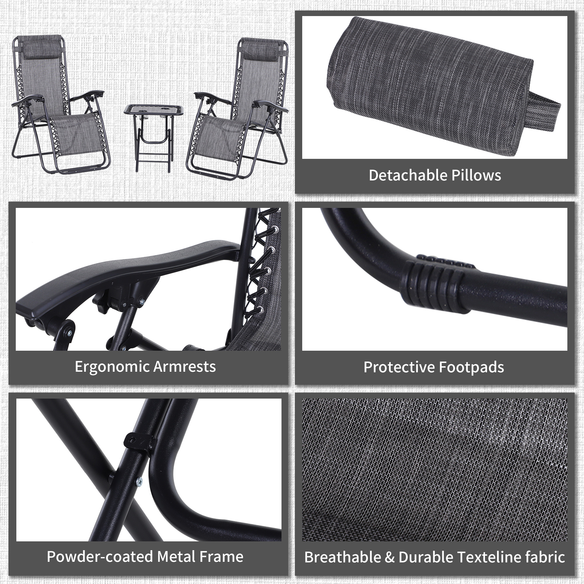 Features: - Including two zero-gravity chairs and a side table
