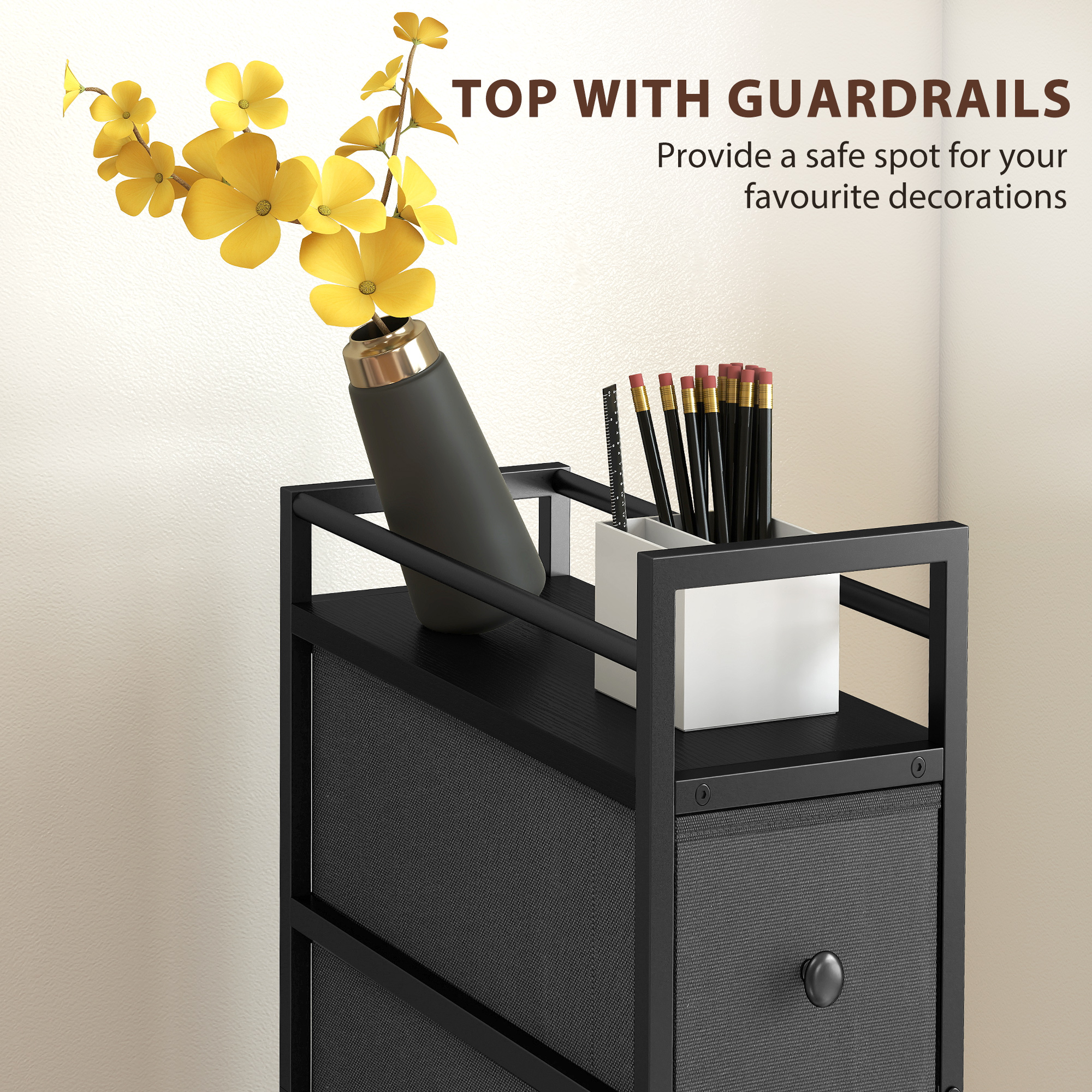 Tired of that awkward, cluttered gap beside your sofa or bed? Those narrow spaces often become frustrating dead zones. Reclaim them with the HOMCOM slim fabric chest of drawers. Its four deep drawers neatly organise your essentials, while the strong frame provides a reliable support for your belongings. Finally, a sense of calm and order transforms once-wasted nooks into truly functional, beautiful parts of your home with the narrow chest of drawers.