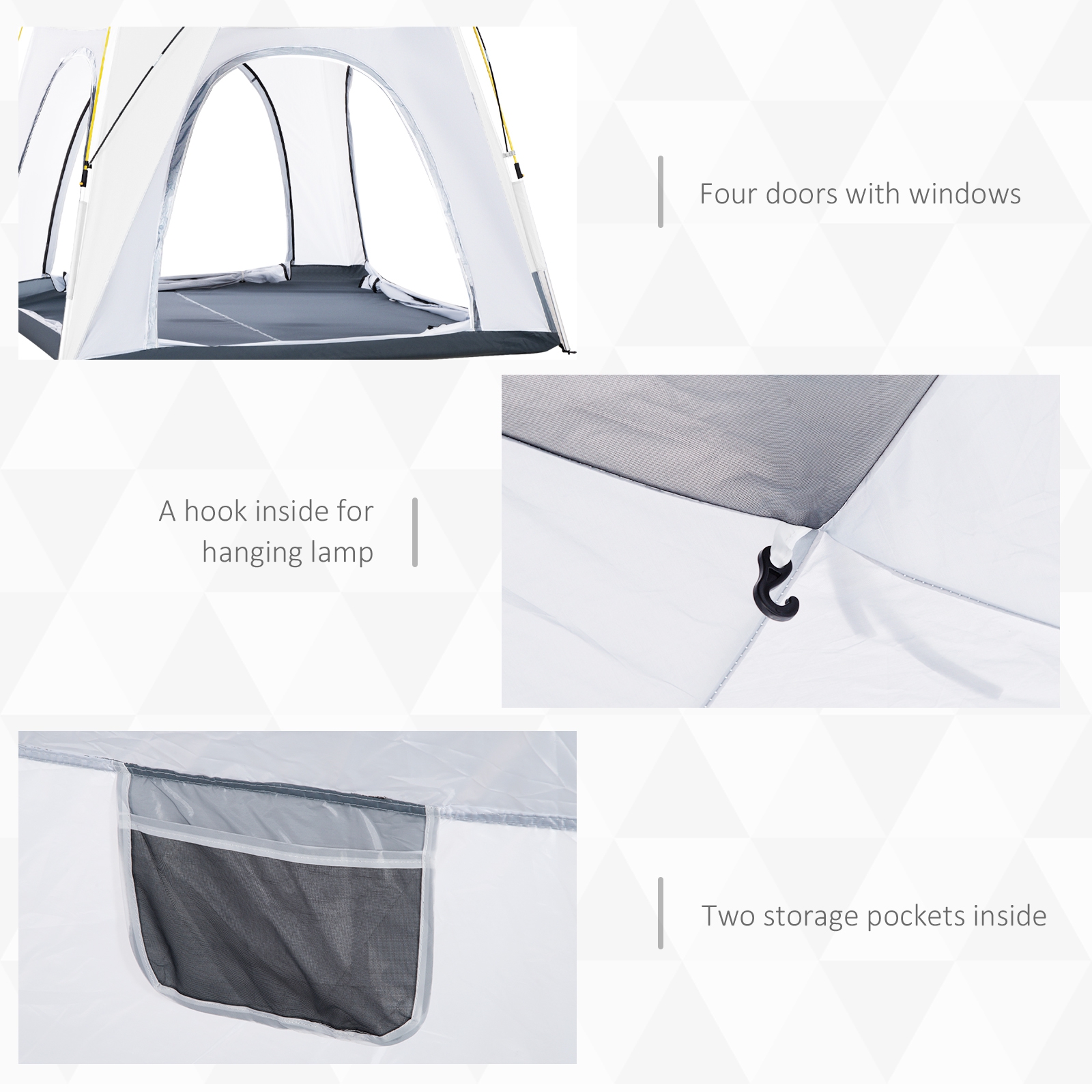 Camp with plenty of space - do it with this Outsunny 4 person tent. It's easy to unfold and set up: featuring pre-attached poles and a hydraulic pressure mechanism, the family tent pops open up easily for a fuss-free set up - also easy to fold up too. The 190T polyester shell protects against light weather for use from Spring to Autumn. This 4 man tent features three windows to let air in, with the large front door making it easy to enter and leave. Comes with carry bag and eight ground stakes.