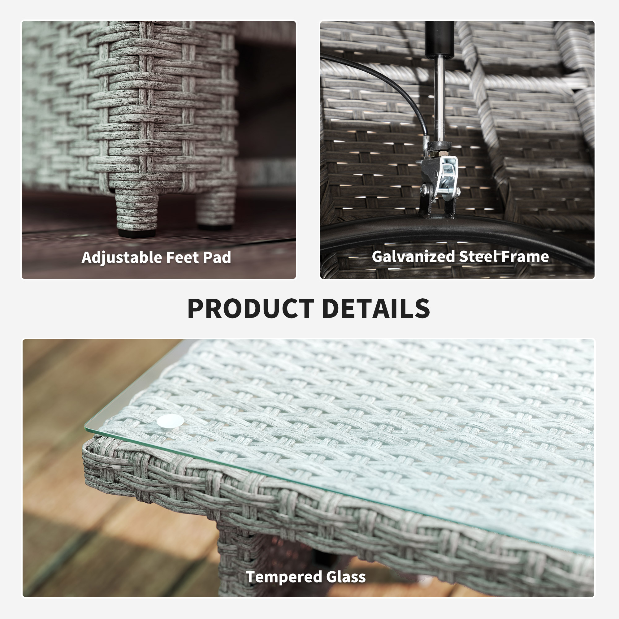 - Materials: Steel, Polyester, Cotton, PE Rattan, Glass