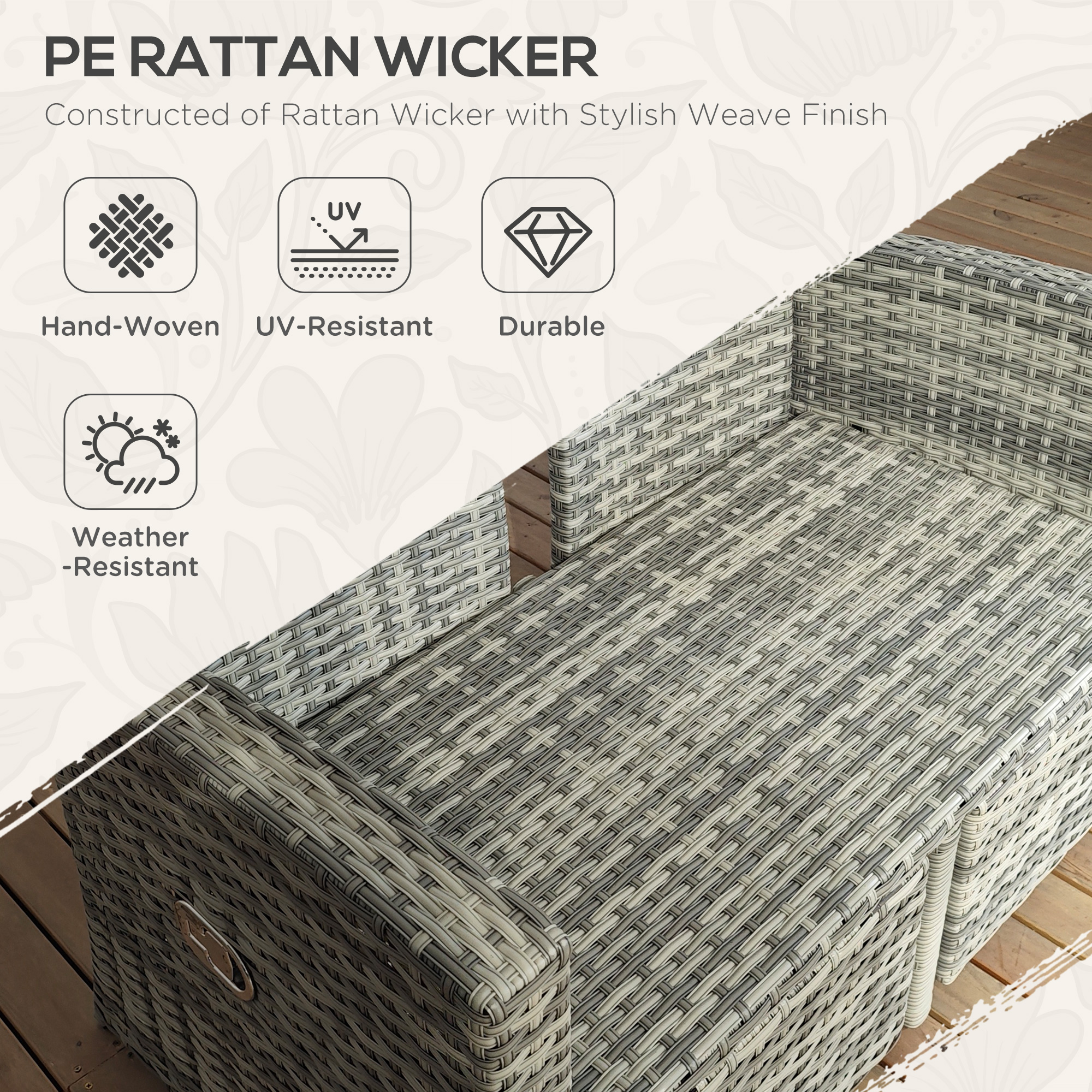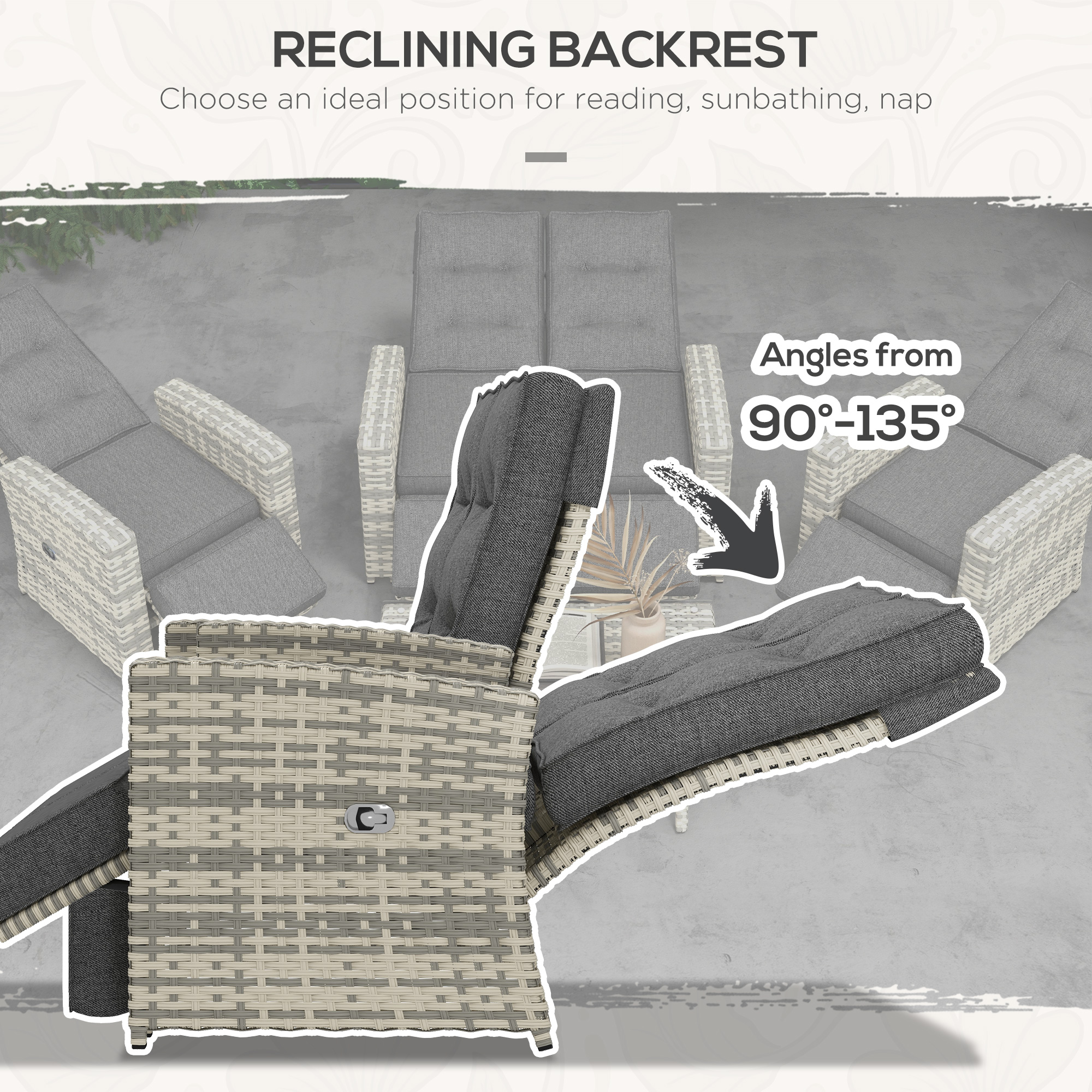 An inviting outdoors, this season and beyond: say hello to this Outsunny rattan furniture set. All pieces have a galvanised steel frame for a strong core, wrapped in plastic wicker for double the durability-and style, of course. The two armchairs have 90°-135° reclining backs-extra relaxing points scored!