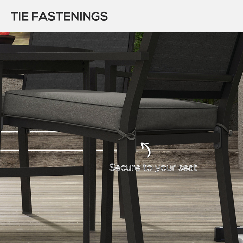 This Outsunny set of four seat cushions brings comfort to you, wherever. Four 51 x 51cm cushions are great for plenty of different seats: add on top or use as replacement. The smooth fabric covers are resistant to light strains so they keep cleaner for longer. Finished with tie fastenings to secure to seat.
