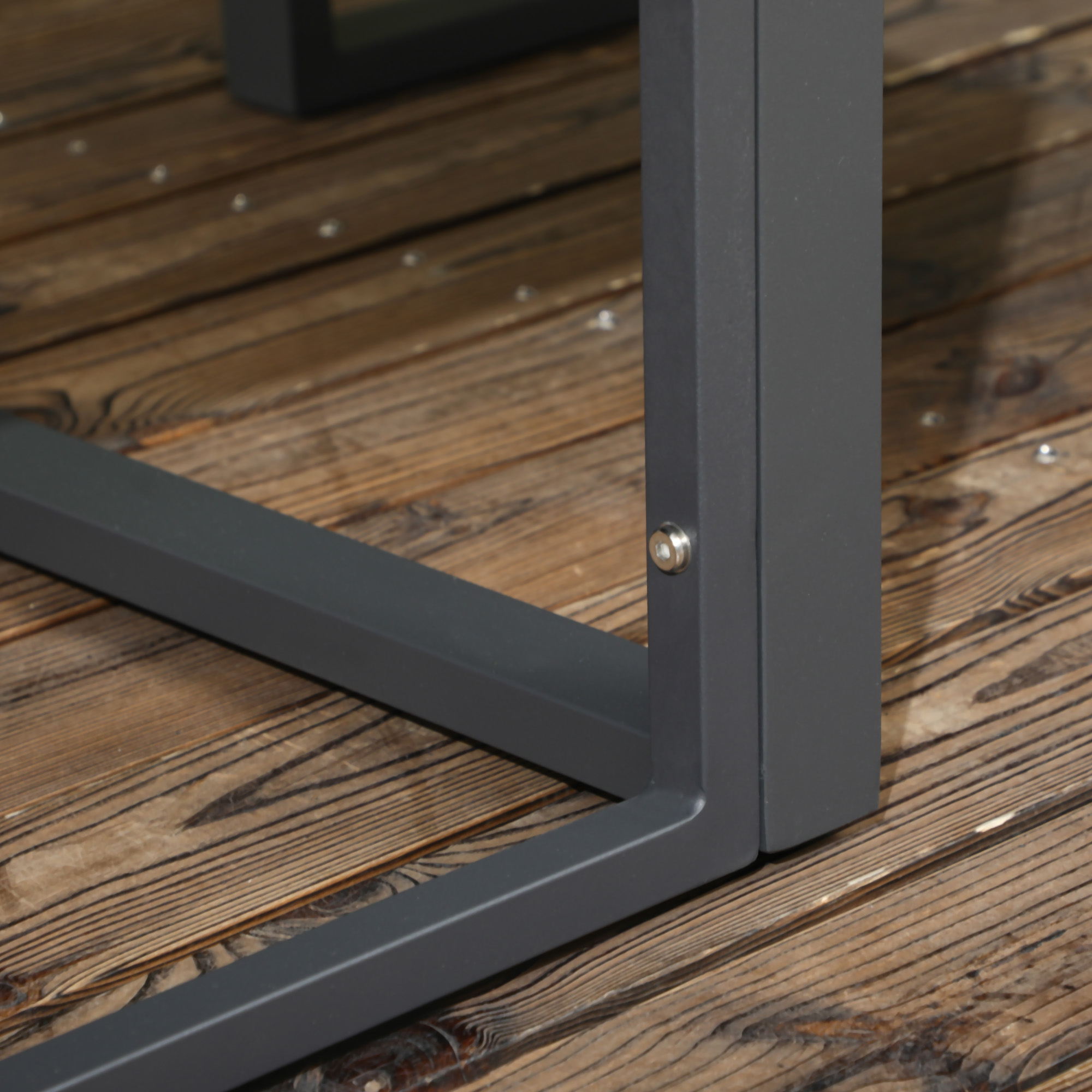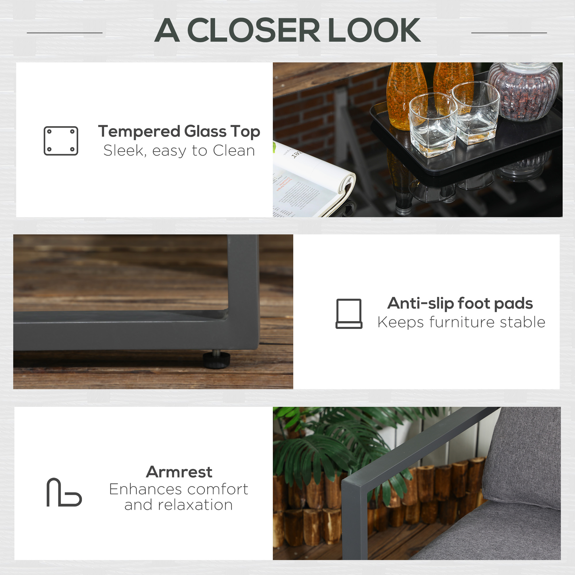 Take comfort back to basics with this four-piece outdoor dining set from Outsunny. Using aluminium for the frame of the four chairs and the table, each piece has been made with durability and strength in mind, as well as being lightweight for you to move everything around easily. Placed on the seats and the backs of the sofa and two chairs, thick padded cushions ensure you’ll be sitting comfortably, with the high backs and armrests working together for additional comfort and support.