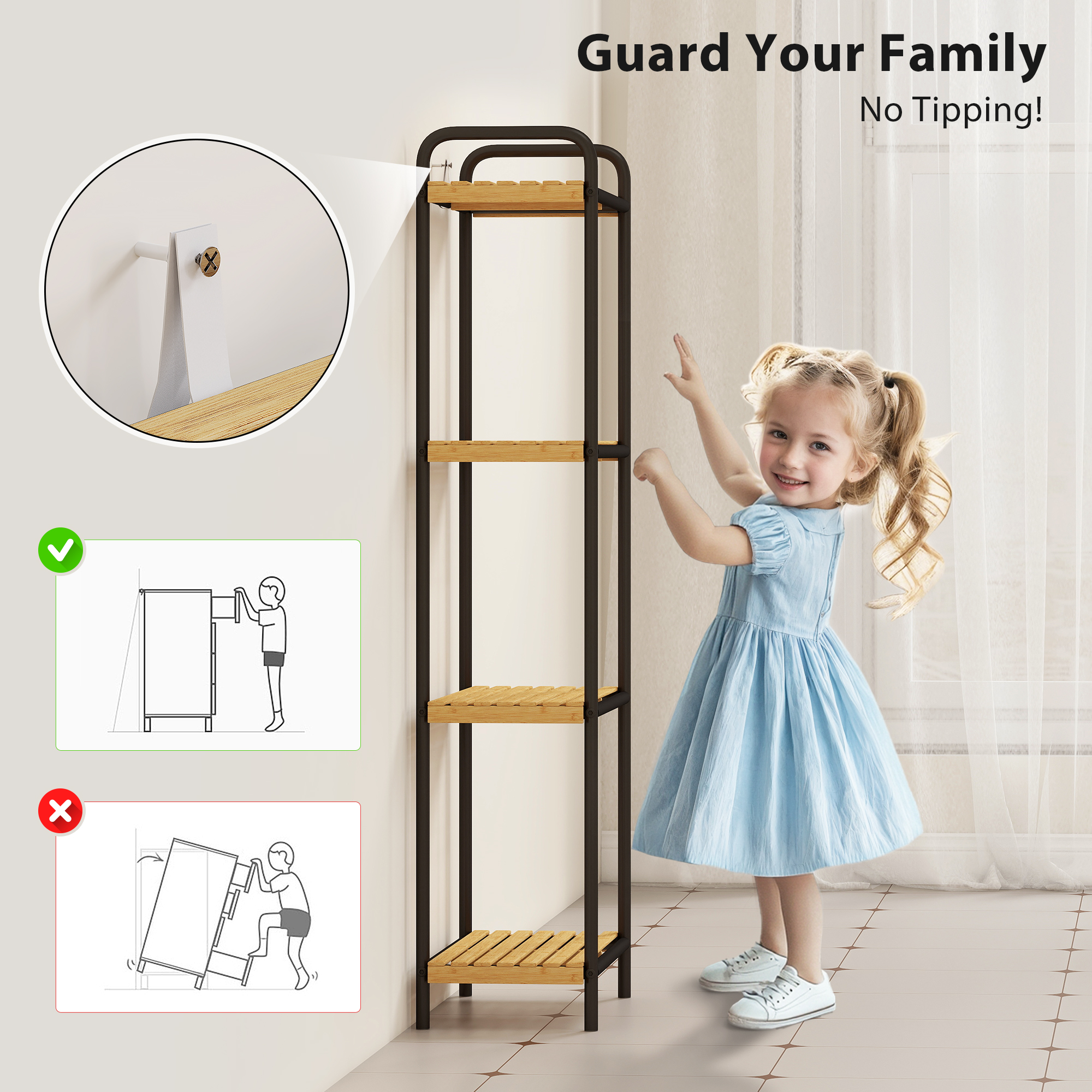 - Anti-tip kit and powder-coated steel frame keep your family safe