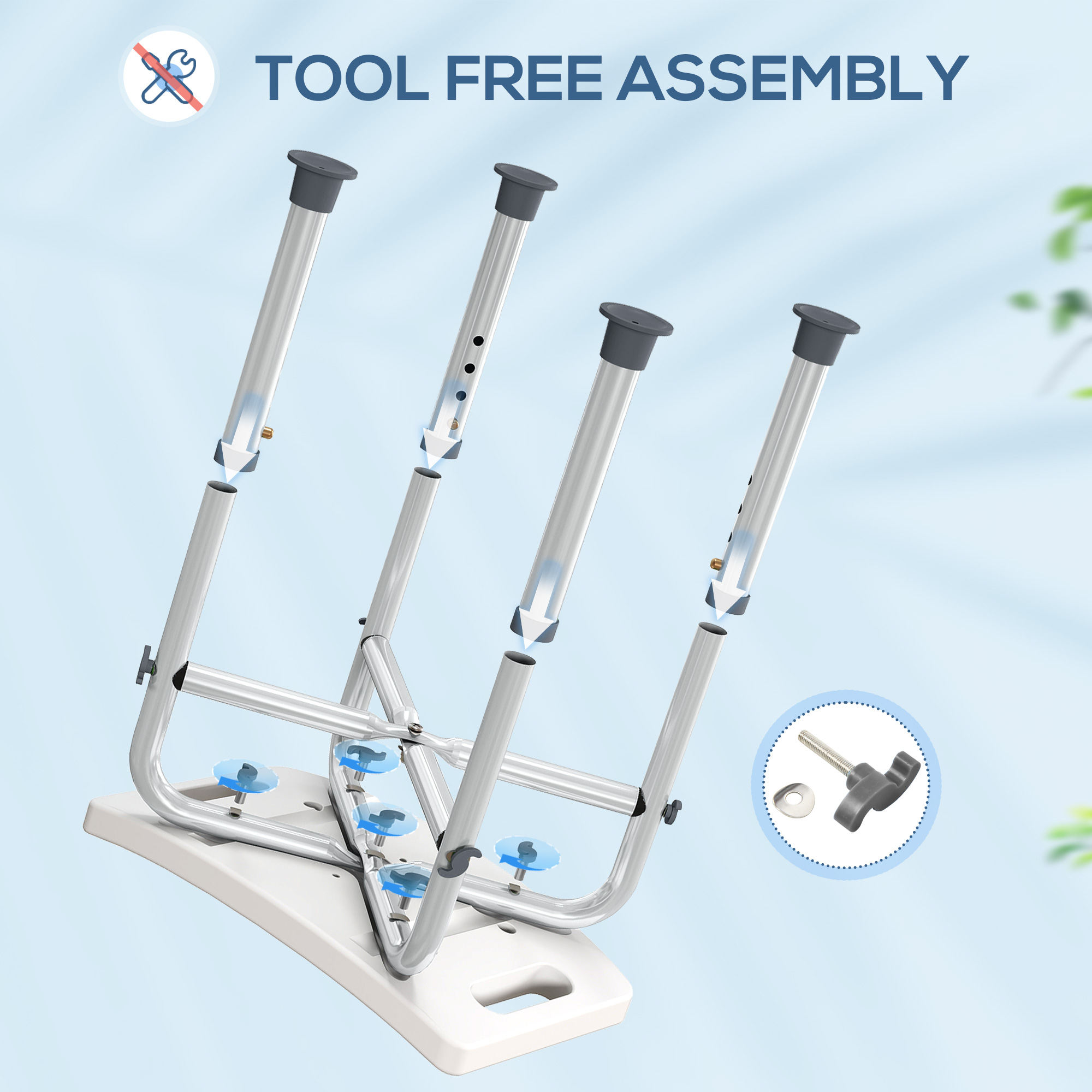Made for assistance in the shower or bath, our shower chair for the elderly from HOMCOM is suitable for the elderly, injured or those who require extra assistance whilst showering or bathing. Adjustable to four different heights, the shower chair for the disabled help you find the most comfortable and safe position to sit. Its curved seat design with padding makes the shower seat for elderly comfortable to use. It's finished with four large suction foot pads for safety and stability.