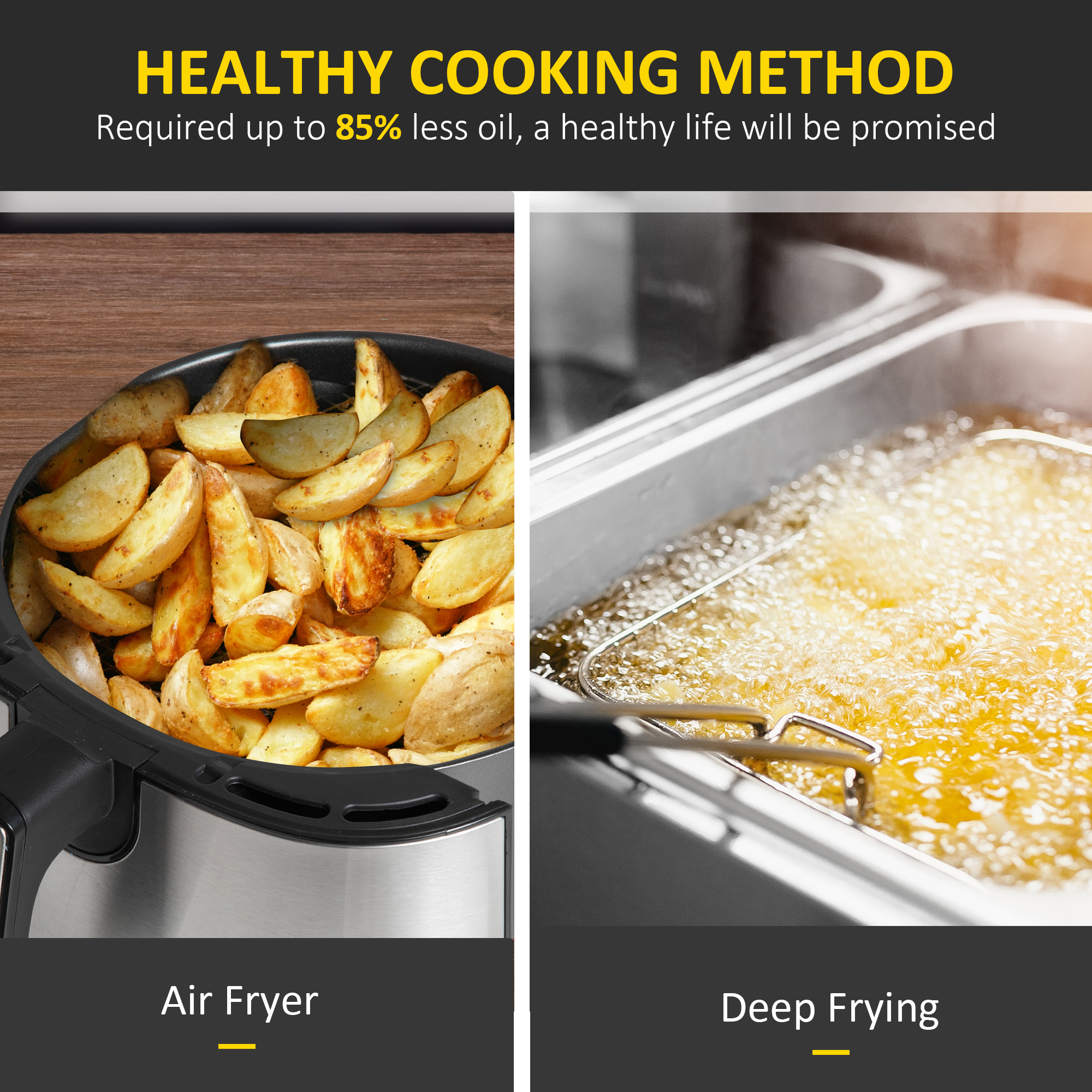 Do you want to enjoy your favorite fried foods but want to switch to a healthier lifestyle? HOMCOM has a multifunctional air fryers for home use made just for you. Enjoy foods for breakfast, lunch and dinner with air fryer, bake, broil and roast option. Use the LED display with 8 programmable menu options, so if you're not sure on cook temperature and time, this air fryer can do the work for you. Don't give up your favorite foods with this HOMCOM digital air fryer.